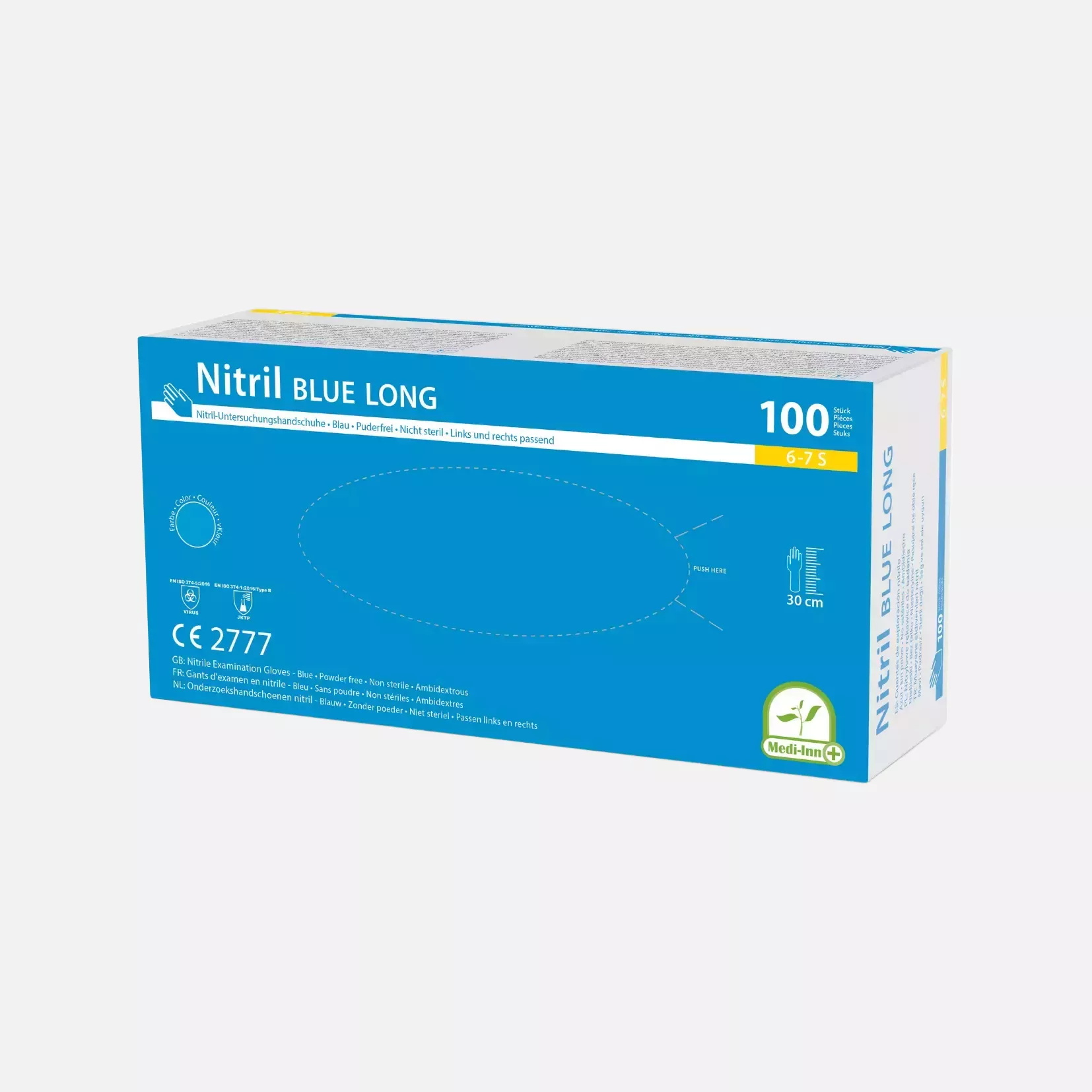 Medi-Inn Einweg-Nitrilhandschuh 30 cm, 100 Stück pro Packung.