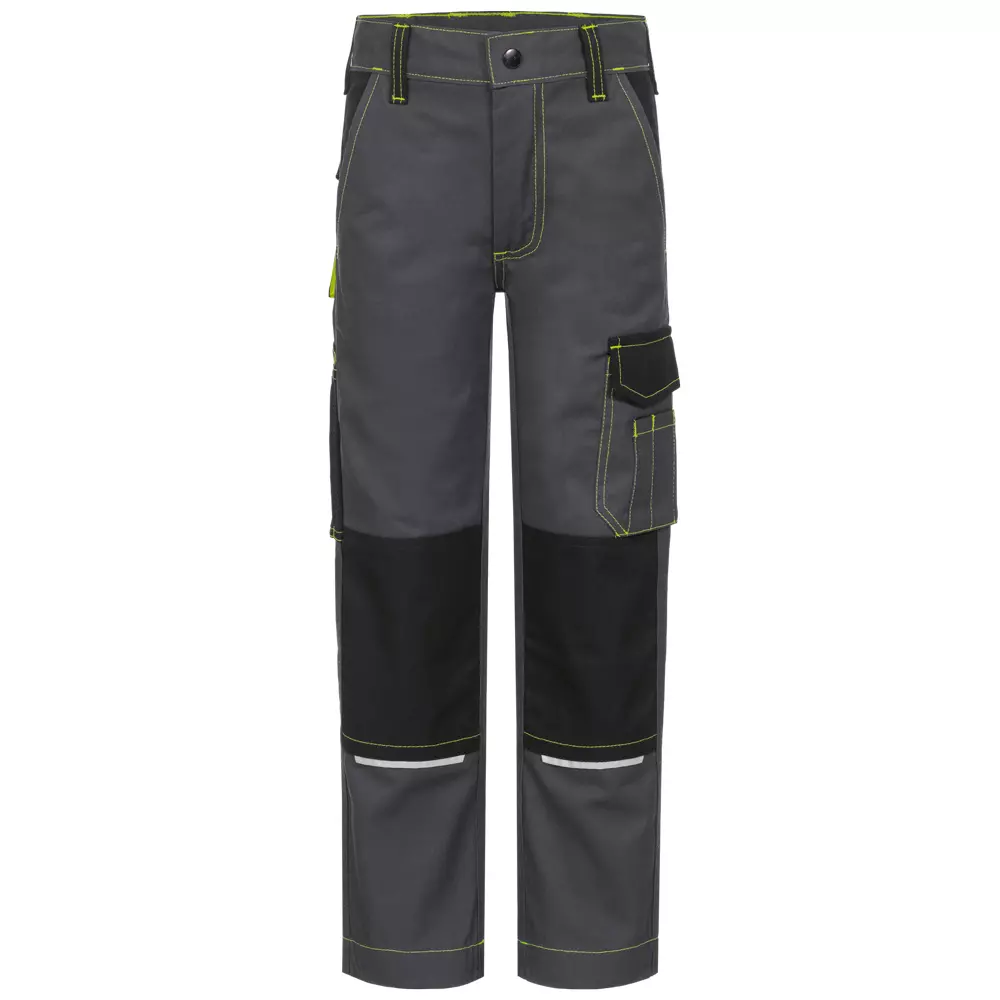 Norm: EN 13758-2 Oberstoff: 65% Polyester, 35% Baumwolle, ca. 245 g/m² Farbe: Grau / Schwarz Größen: 98/104 - 170/176 Leichtes und bequemes Twill-Gewebe • Neongrüne Kontrastnähte und Kontrasteinsätze • Reflexbiesen vorne und hinten