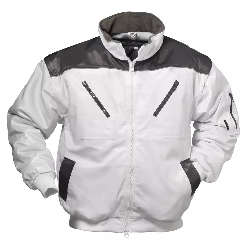 Oberstoff: 60% Baumwolle/40% Polyester, 250 g/m² Steppweste: 100% Polyester Futter: 100% Polyester Farbe: Weiß / Grau Größen: S - 4XL 3-in-1 Jacke Herausnehmbare Innenweste • Abnehmbare Ärmel • Innenseite: Komfortables Polyesterfutter