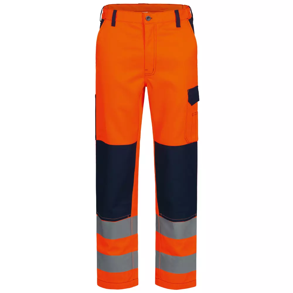 Norm: EN ISO 20471 Klasse 2, EN ISO 13688 Oberstoff 1: 80% Polyester / 20% Baumwolle, ca. 280 g/m² Oberstoff 2: 65% Polyester / 35% Baumwolle, ca. 250 g/m² Farbe: Warnorange / Marine Größen: 42 - 64 Leichtes und bequemes Twill-Gewebe