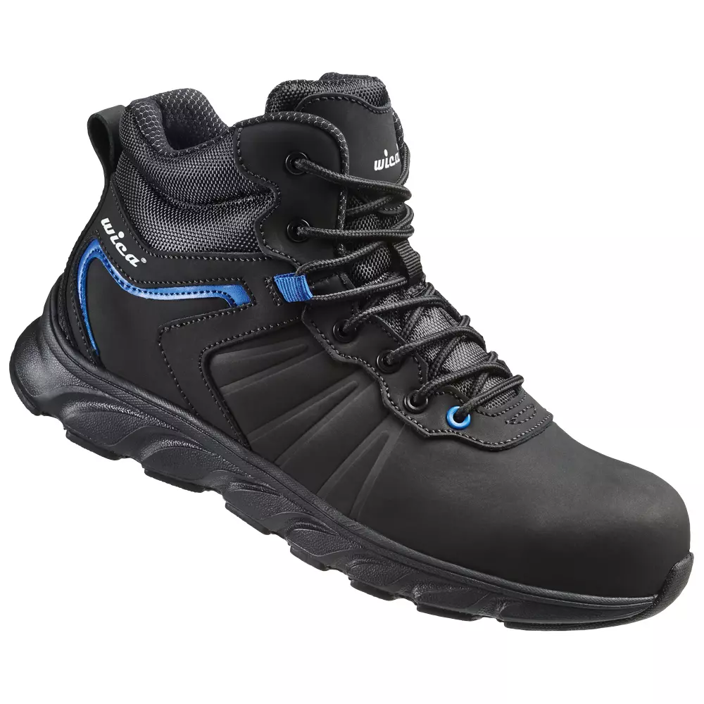 Norm: EN ISO 20345 S3 SRC Farbe: Schwarz/Blau Weite: 10,5 Größe: 37-48 Verpackungseinheit: 10 Paar Obermaterial aus Action-Nubukleder • Gepolsterte Lasche aus Textilmaterial • Ergonomisch geformter, gepolsterter Kragen aus Textilmaterial