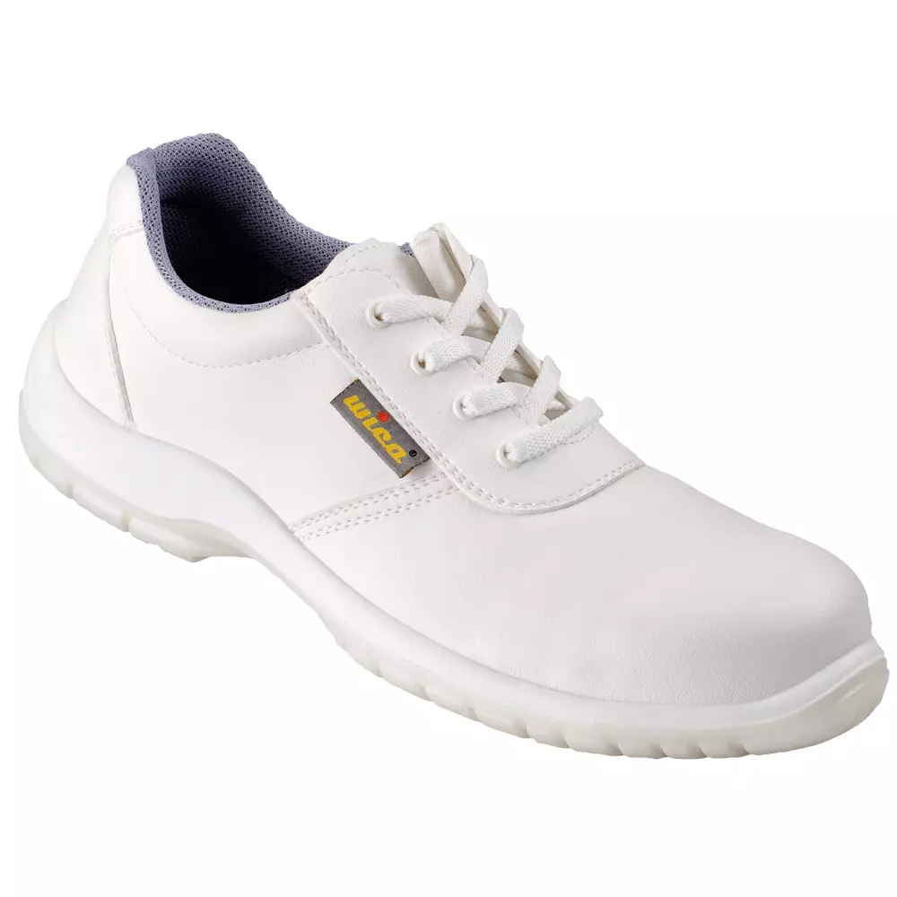 Norm: EN ISO 20345 S2 SRC Farbe: Weiß Weite: 11 Größe: 36-47 Verpackungseinheit: 5 Paar Obermaterial aus Mikrofaser • Gepolsterter Schaftrand • Staublasche • Schnürung über Kunststoffösen • Waschbar bis 30°C • Anatomische Einlegesohle