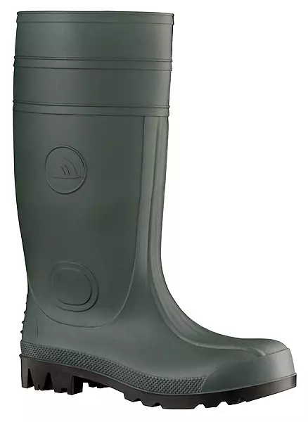 EN 20345:2011 S5 SRA Material: Obermaterial: PVC, Sohle: PVC/Nitril • Farbe: Obermaterial: Grün, Sohle: Schwarz • Gewicht: 2,1 kg/Paar bei Größe 42 • Schafthöhe: ca. 38 cm • Größe: 37-48 • Verpackungseinheit: 6 Paar • Flexibel auch bei niedrigen Temperaturen