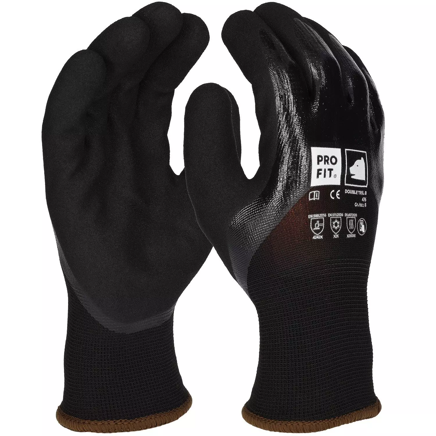 Double Tril Nitril Winter Arbeitshandschuhe, schwarz, 6 Paare