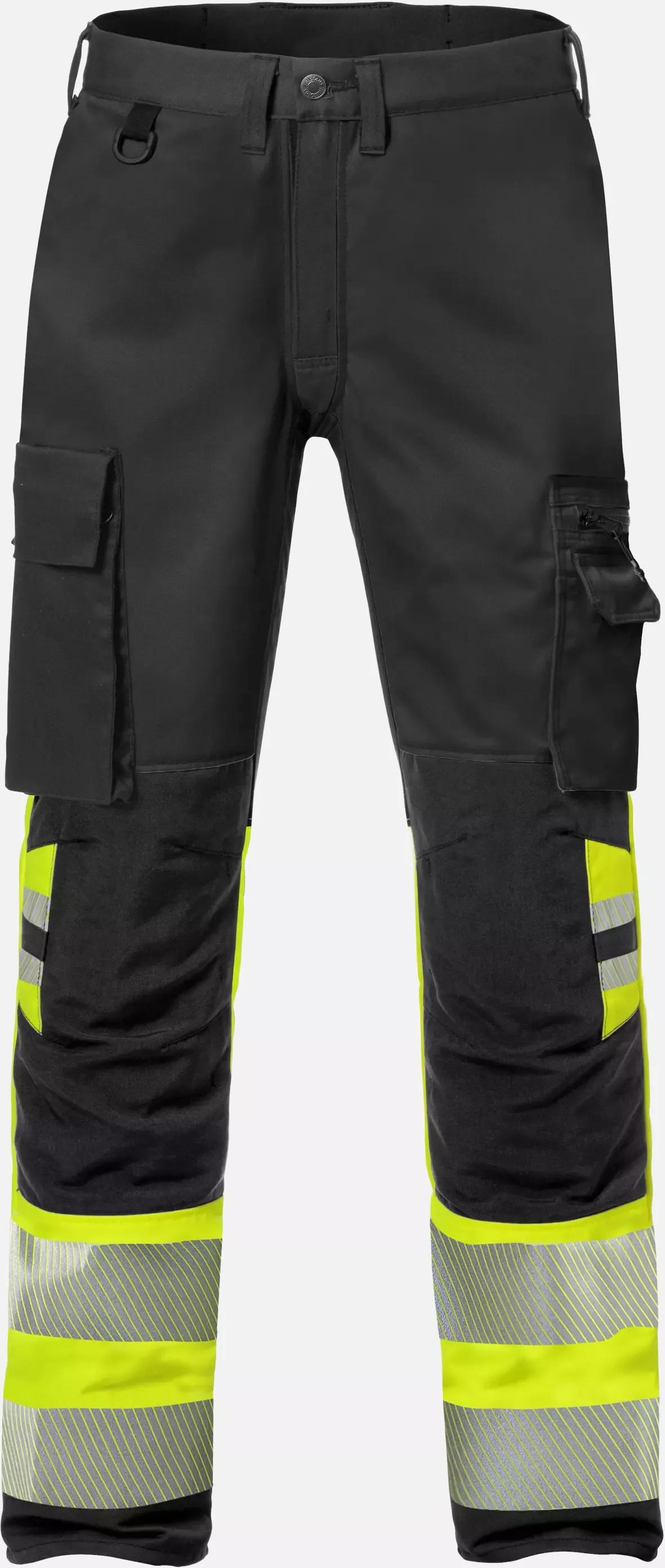 Diese High-Vis Stretch-Hose der Klasse 1 kombiniert Bewegungsfreiheit mit umfassendem Schutz für anspruchsvolle Arbeitsumgebungen. Mit strategisch platzierten Stretch-Einsätzen, CORDURA®-Verstärkungen an kritischen Stellen und einer Vielzahl funktionaler Taschen bietet sie optimalen Komfort und Praktikabilität. Die Hose erfüllt die Anforderungen der EN ISO 20471 Klasse 1 für Warnschutzkleidung und ist nach 25 Wäschen zugelassen.