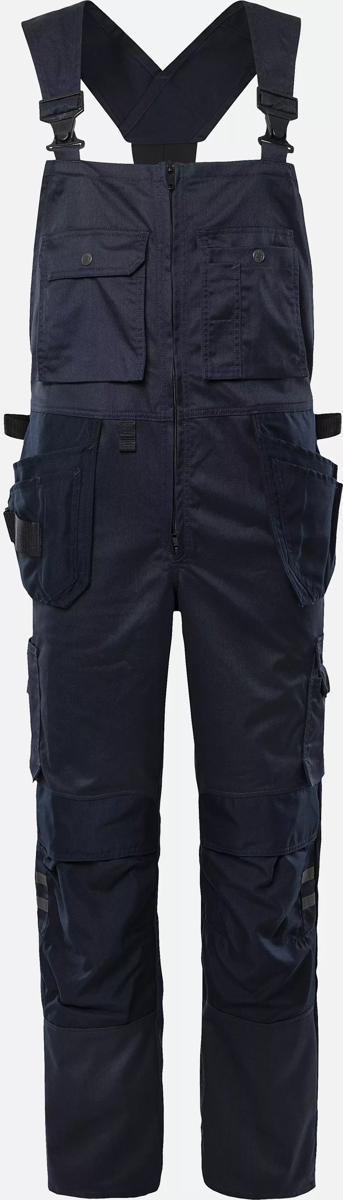 Diese Handwerker-Latzhose aus teilweise rezykliertem Material bietet mechanischen Stretch und umfassende Funktionalität für Handwerker und Bauarbeiter. Mit CORDURA®-verstärkten Bereichen an kritischen Stellen, verstellbaren Hosenträgern und zahlreichen praktischen Taschen ist sie für den anspruchsvollen Arbeitsalltag konzipiert. Die Latzhose verfügt über reflektierende Details an den Knien und ist nach EN 14404 zugelassen, wenn sie mit entsprechenden Knieschonern verwendet wird.