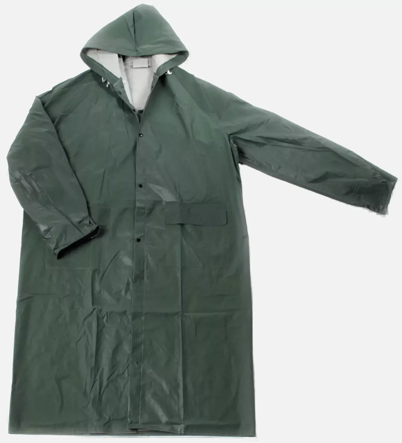Außenmaterial: doppelte PVC-Beschichtung auf Baumwoll-/Polyester-Trägermaterial, wasserdicht Stärke: 0,32 mm Verarbeitung: genäht und verschweißt Länge: 120 cm Verschluss: Druckknopfverschluss Kapuze: elastischer Kordelzug Taschen: unten: 2 gerade mit horizontaler Patte Norm: EN ISO 13688 ARTIKEL IST ERSATZ FÜR REGENMANTEL RLCG50300-50304 Barcode: 3856024200073 Maßeinheit: Stück Verpackung/Mindestbestellmenge: 1 Kartoninhalt: 10