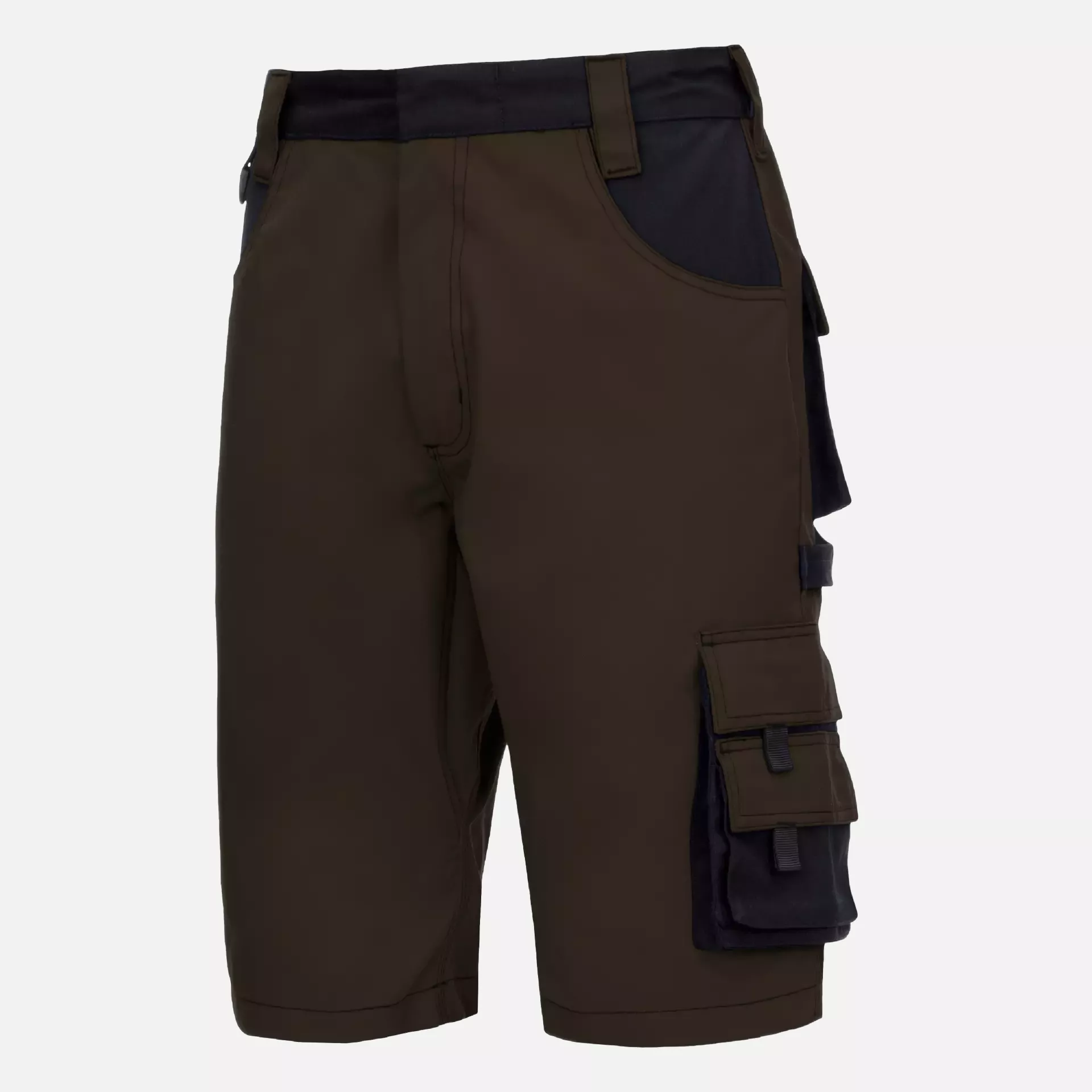 Professionelle kurze Arbeitshose, konzipiert für maximale Haltbarkeit und Funktionalität. Diese atmungsaktive 280 g/m² Hose verfügt über Dreifachnähte, Canvas-Verstärkungen und diverse praktische Aufbewahrungslösungen. Ausgestattet mit Reflexbiesen für die Sichtbarkeit und einem ergonomischen Design mit elastischem Bund, erfüllt sie die Anforderungen des STANDARD 100 by OEKO-TEX® für textile Sicherheit.