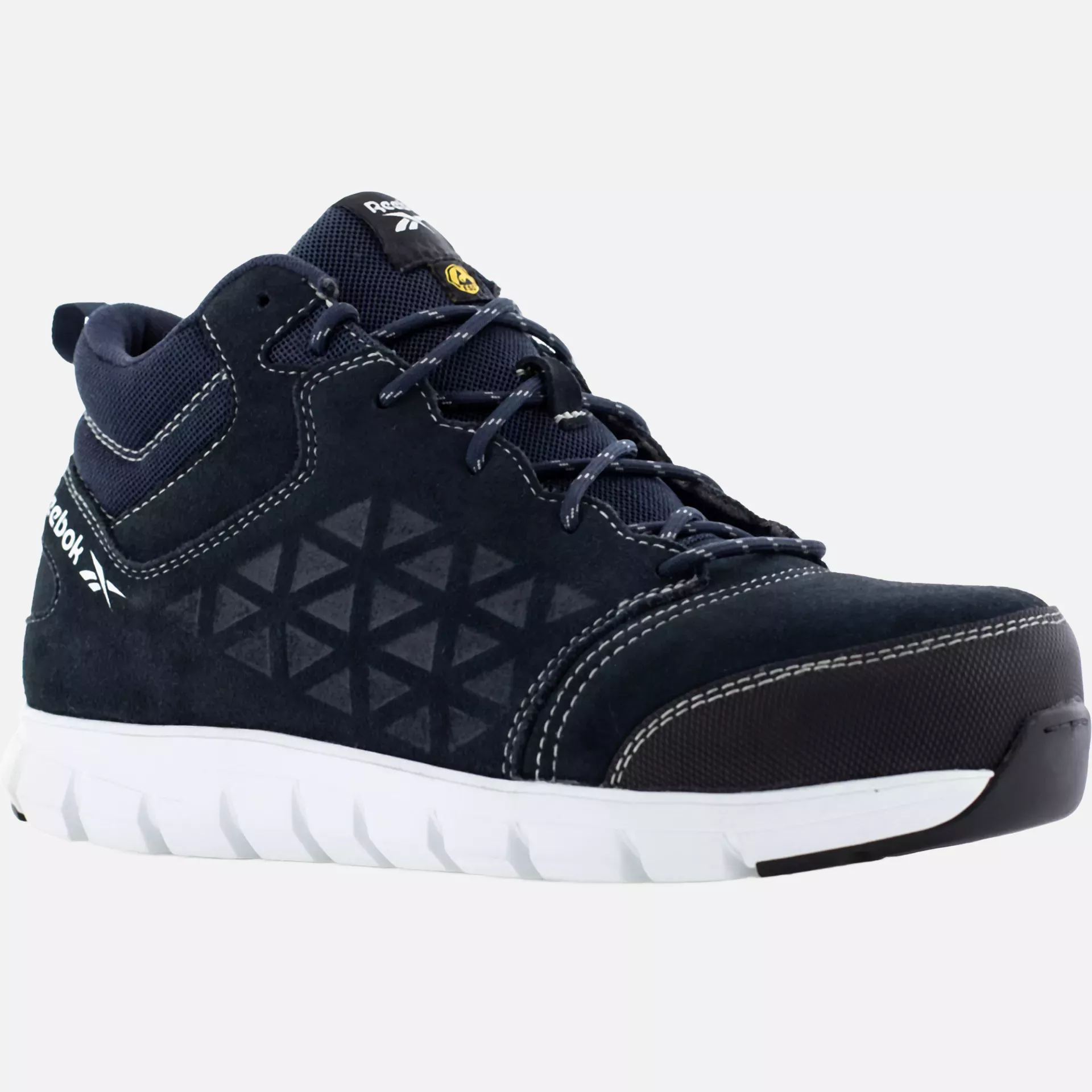 Die Reebok Excel Light Sicherheitsschuhe sind für professionellen Schutz konzipiert und verfügen über ein wasserabweisendes Obermaterial aus Wildleder sowie ein atmungsaktives, feuchtigkeitsableitendes Mesh-Futter für ganztägigen Komfort. Diese Sicherheitsschuhe bieten eine leichte Aluminium-Zehenschutzkappe und eine nicht-magnetische, durchtrittsichere Verbundstoff-Einlage, die die gesamte Fußfläche abdeckt. Die spezielle XL ExtraLight®-Laufsohle bietet Beständigkeit gegen Kraftstoff, Öl und Abrieb, ergänzt durch ein MemoryTech-Memory-Schaum-Fußbett für hervorragende Dämpfung.