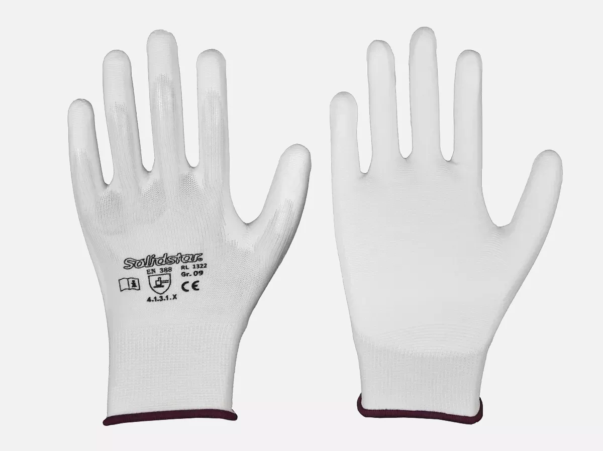 Solidstar Nylon-Feinstrickhandschuh PU-Beschichtung weiß, 300 Paare