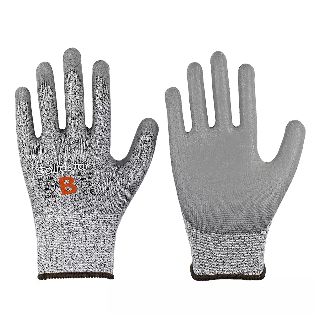 Solidstar Feinstrickhandschuh PU-Beschichtung grau Schnittschutz Stufe B, 72 Paare