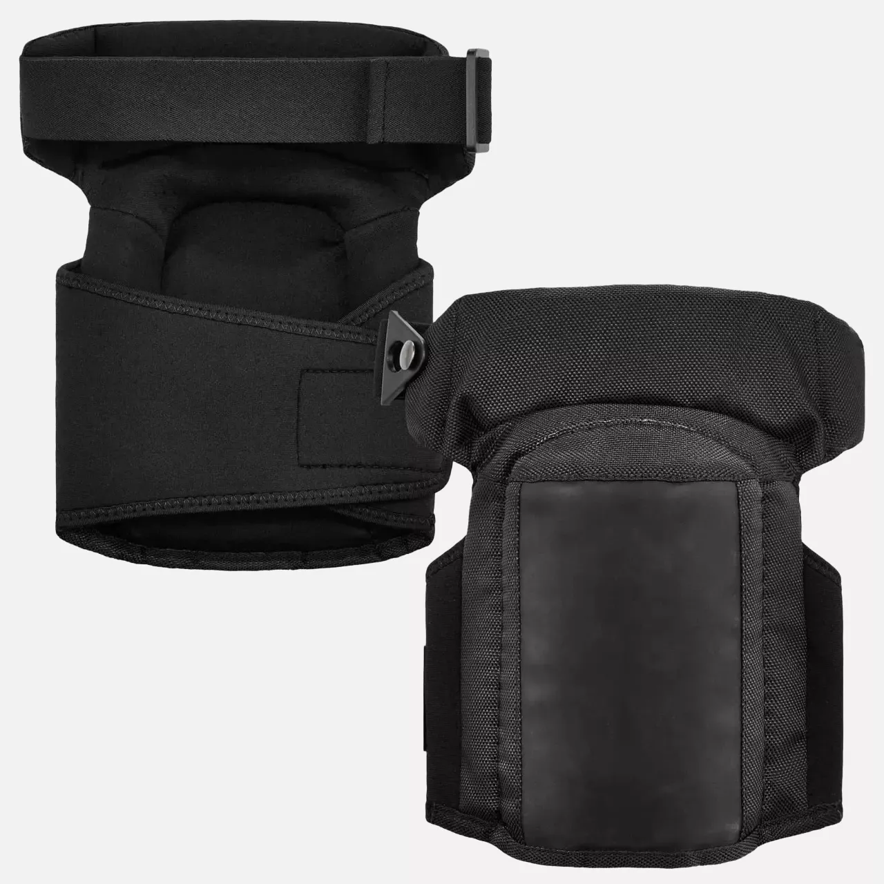 Das Comfort Hinge-Design der Komfort-Scharniere passt sich Ihrer Bewegung an und sorgt für verbesserten Komfort, Passform und Stabilität. Die 1680D ballistische Nylonhülle, die 420D abriebfeste Nylon-Gummikappe und die strapazierfähigen Riemen ermöglichen den langlebigen Einsatz auf harten Baustellen. Der leichte, aber stützende Gelschaum und EVA-Schaum polstern die Knie auf rauen Oberflächen. Die große, rutschfeste und weiche Gummikappe verkratzt oder markiert keine Oberflächen und bleibt an Ort und Stelle. Das Scharnierdesign, die strategisch platzierten Riemen, die langlebige Verschlussschnalle und der große Klettverschluss verhindern ein Verrutschen der Knieschützer. Die dicken, elastischen Riemen lassen sich leicht für eine individuelle Passform anpassen. Die Knieschützer wurden entwickelt und getestet für die Verwendung durch Gepäckabfertiger von Fluggesellschaften und gehören zu den anspruchsvollsten Knieschützern der Branche.