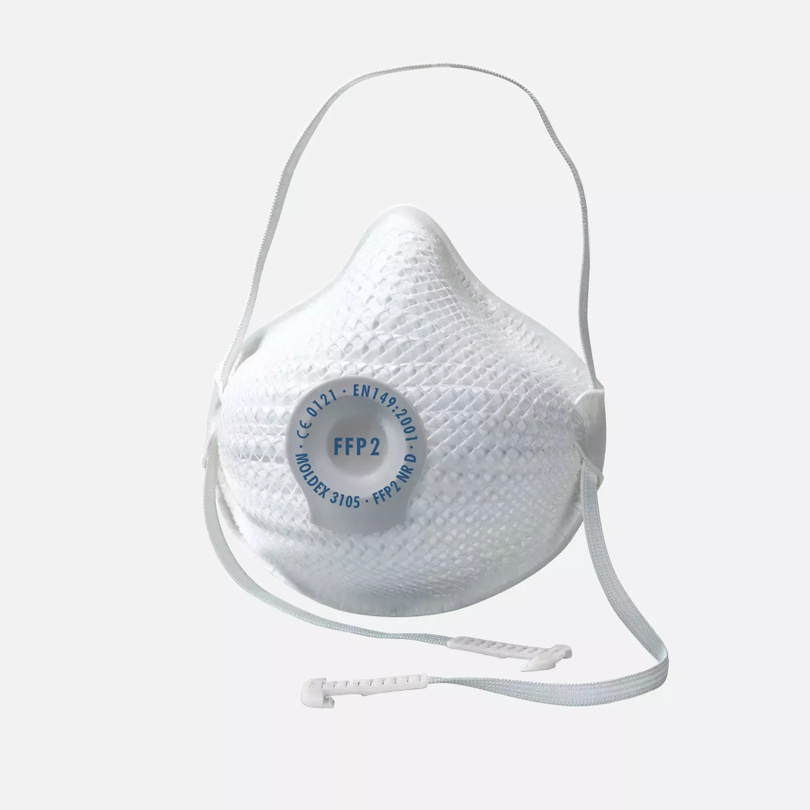 Die Einweg-Halbmaske FFP2 NR D in Größe M/L verfügt über Klimaventil® Faltfilter-Technologie mit 260% mehr Filterfläche, geringem Atemwiderstand und hoher Aufnahmekapazität. Sie schützt vor Stäuben, Rauch und Aerosolen auf Wasser-Ölbasis und kann dank des Clip-Verschlusses an der Bebänderung praktisch und einfach um den Hals gehängt werden. Die Maske ist mit einer zusätzlichen Dolomitstaubprüfung ausgestattet und das Klimaventil® erleichtert das Ausatmen und hält die Luft unter der Maske kühl. Sie ist einzeln verpackt und entspricht EN 149: 2001 + A1: 2009 FFP2 NR D und schützt gegen ungiftige Stäube und Aerosole auf Wasser- und Ölbasis sowie gegen CMR-Stoffe und luftgetragene biologische Arbeitsstoffe der Risikogruppen 2 + 3, wenn eine Gefährdungsbeurteilung vorliegt.