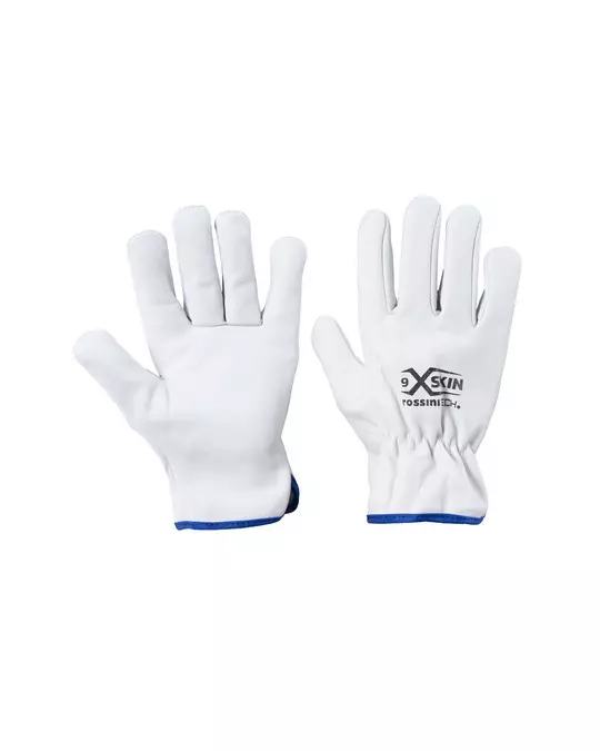Professionelle Arbeitshandschuhe mit Vollnarbenlederkonstruktion auf Handfläche und Handrücken, die für optimalen Komfort und Schutz entwickelt wurden. Diese Handschuhe kombinieren Haltbarkeit mit Flexibilität durch das elastische Bündchen und das geraffte Handgelenk und bieten gleichzeitig eine ausgezeichnete Abrieb- und Reißfestigkeit.
