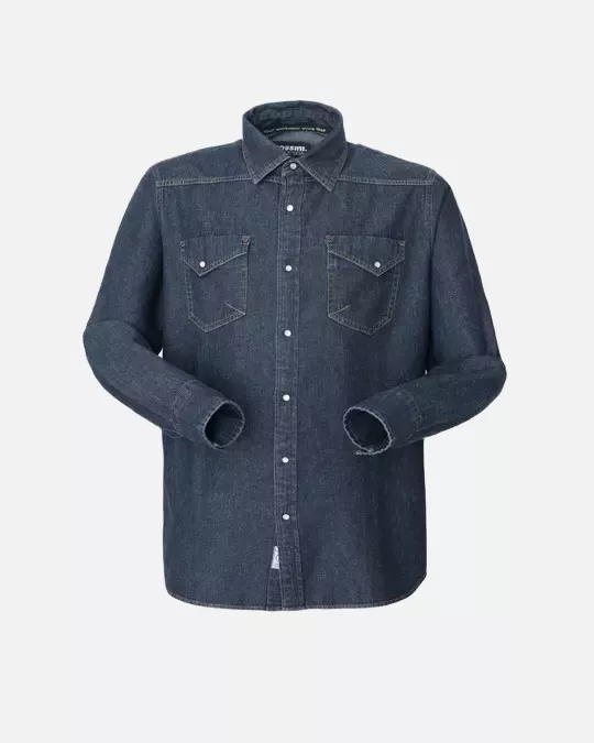 Dieses professionelle Jeanshemd zeichnet sich durch ein Stone-Washed-Finish und durchdachte Designelemente für Komfort und Langlebigkeit aus. Das Kleidungsstück kombiniert praktische Details wie Druckknopfverschlüsse und Brusttaschen mit raffinierten Akzenten, darunter ein Schweißband aus Baumwolle am Kragen und Kontrastnähte. Die leicht taillierte Passform sorgt für ein professionelles Erscheinungsbild und bietet gleichzeitig hohen Tragekomfort.