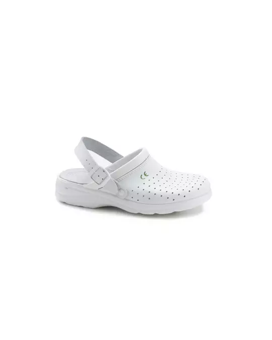 Professioneller Clog mit perforierter Lederkonstruktion für optimale Atmungsaktivität und Komfort. Dieses ökologische Schuhwerk kombiniert leichte Flexibilität mit hoher Abriebfestigkeit, während das anatomische Design und das verstellbare Passformsystem für dauerhaften Komfort sorgen. Die antistatische Polyurethan-Laufsohle bietet zuverlässige Traktion und Stoßdämpfung für lange Tragezeiten.
