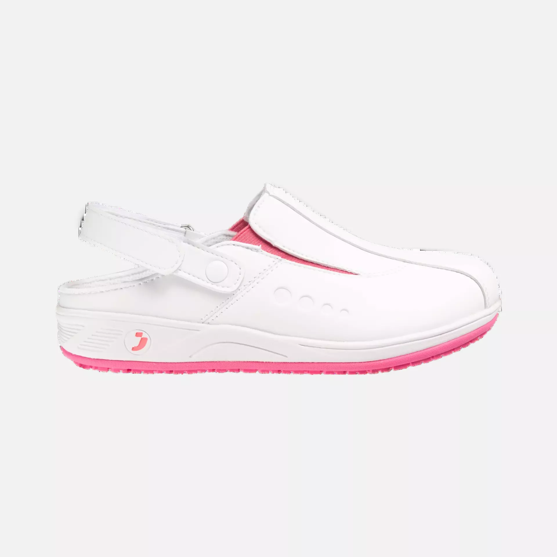 Professionelle Berufsclogs mit verstellbarem Klettverschluss für sicheren Halt und individuellen Komfort. Diese vielseitigen Clogs vereinen SRC-zertifierte Rutschhemmung mit ESD-Schutz und sind damit ideal für Umgebungen, in denen sowohl Sicherheit als auch elektrostatische Kontrolle wichtig sind. Das atmungsaktive Kunstleder-Obermaterial und die herausnehmbare SJ-Schaumstoffeinlegesohle sorgen für ganztägigen Tragekomfort, während die Phylon/Gummi-Laufsohle mit Oxytraction®-Technologie ausgezeichneten Grip auf nassen und trockenen Oberflächen gewährleistet.
