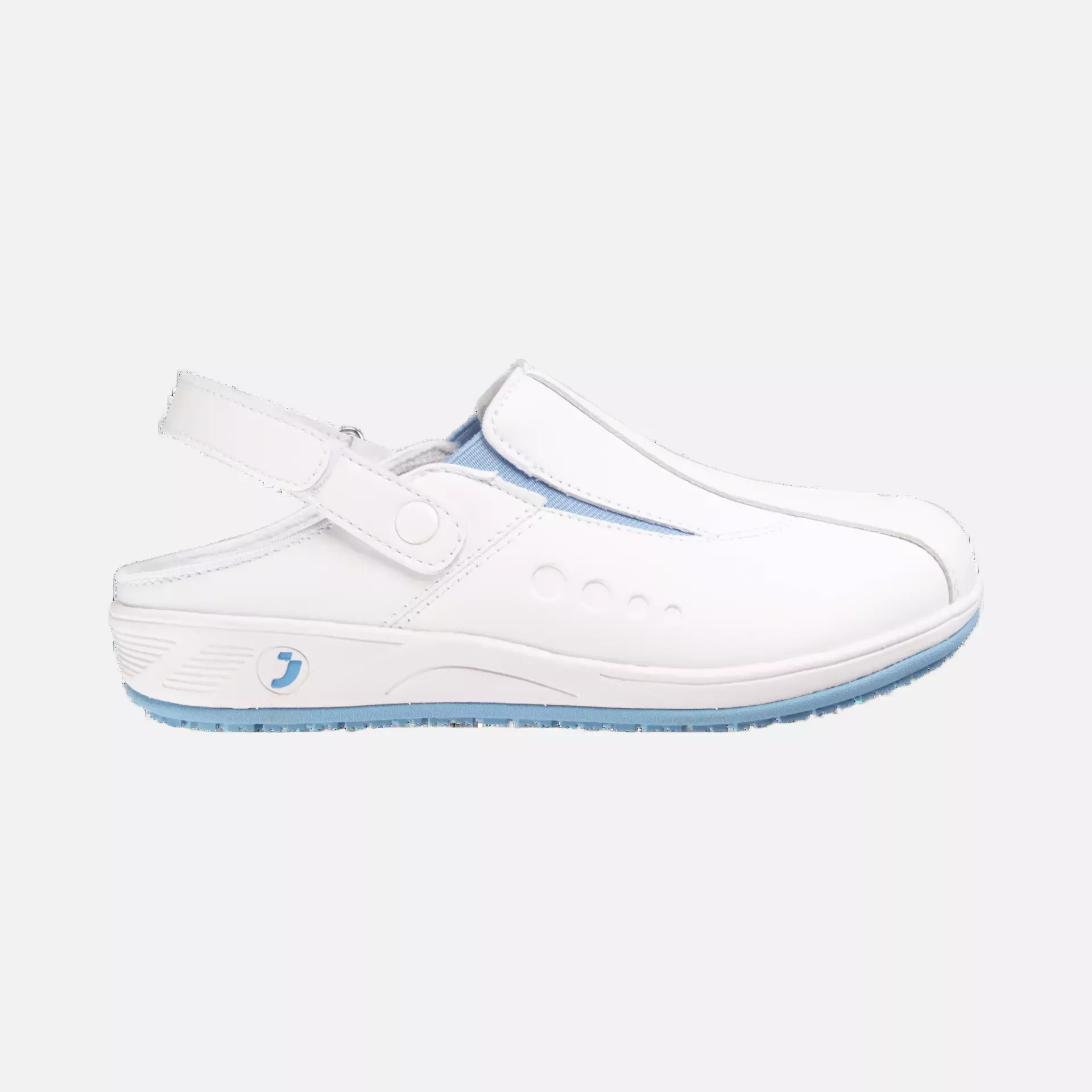 Professionelle Berufsclogs mit verstellbarem Klettverschluss für sicheren Halt und individuellen Komfort. Diese vielseitigen Clogs vereinen SRC-zertifierte Rutschhemmung mit ESD-Schutz und sind damit ideal für Umgebungen, in denen sowohl Sicherheit als auch elektrostatische Kontrolle wichtig sind. Das atmungsaktive Kunstleder-Obermaterial und die herausnehmbare SJ-Schaumstoffeinlegesohle sorgen für ganztägigen Tragekomfort, während die Phylon/Gummi-Laufsohle mit Oxytraction®-Technologie ausgezeichneten Grip auf nassen und trockenen Oberflächen gewährleistet.