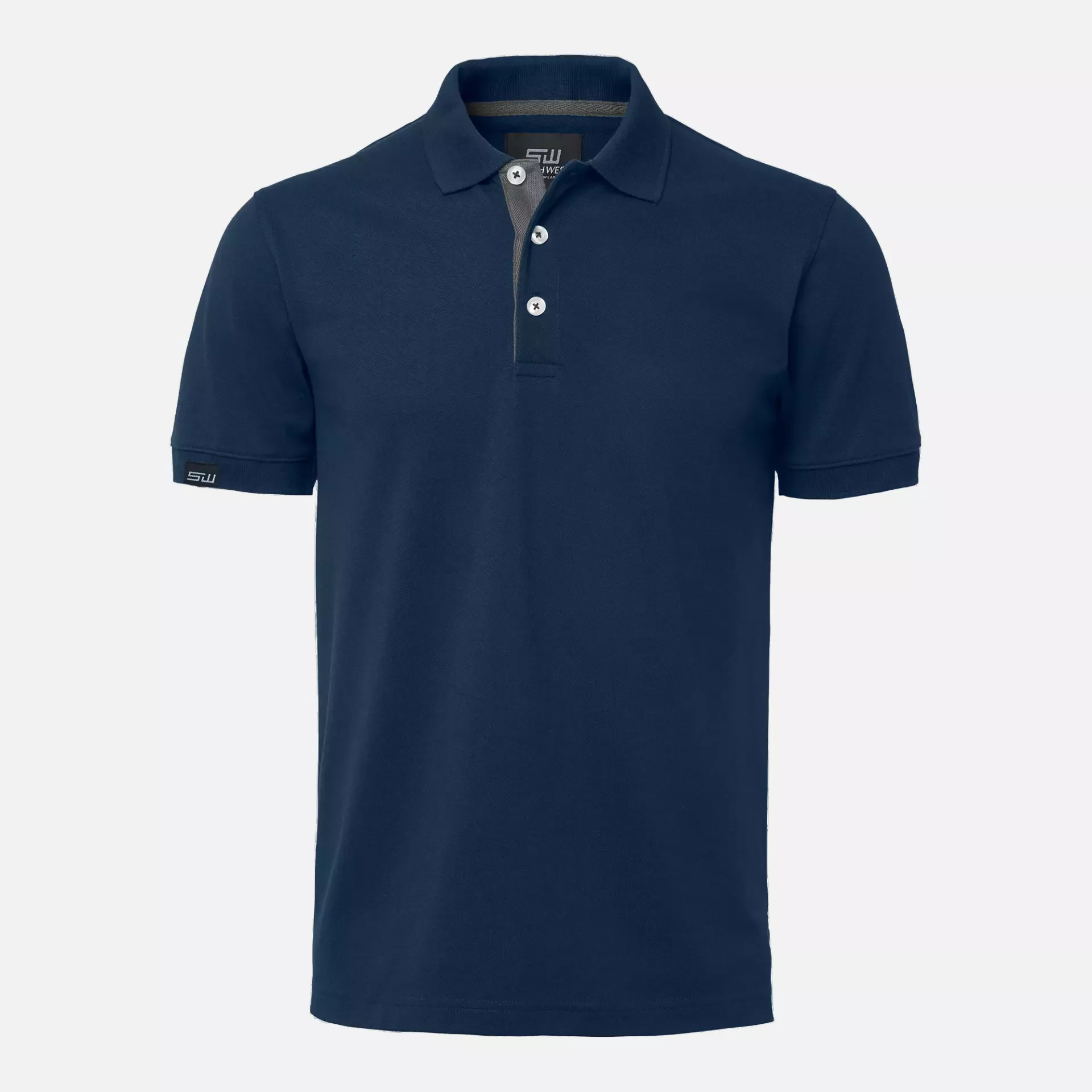 Dieses strapazierfähige Poloshirt kombiniert Polyester und Baumwolle in einer Piqué-Webart und bietet verstärkte Nähte sowie kontrastierende Designelemente für professionelle Arbeitskleidung. Das Kleidungsstück verfügt über weiße Knöpfe auf einer kontrastierenden Knopfleiste, Rippkragen und -bündchen sowie dekorative Stickdetails. Mit OEKO-Tex-Zertifizierung und einem soliden Stoffgewicht von 220 g/m² bietet es zuverlässige Leistung sowohl für Arbeits- als auch für Freizeitumgebungen.