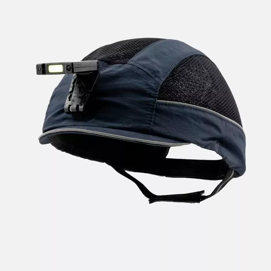 Anstoßkappe mit USB-aufladbarer LED (abnehmbar). Kopfschutz genormt nach EN 812: 2012 (Europäische Norm gegen Stöße und Schläge auf den Kopf). Mindestbestellmenge: 20 Stück. Leistungsstarke LEDs: 75 Lumen. Ultrakurzer 1-cm-Schirm.