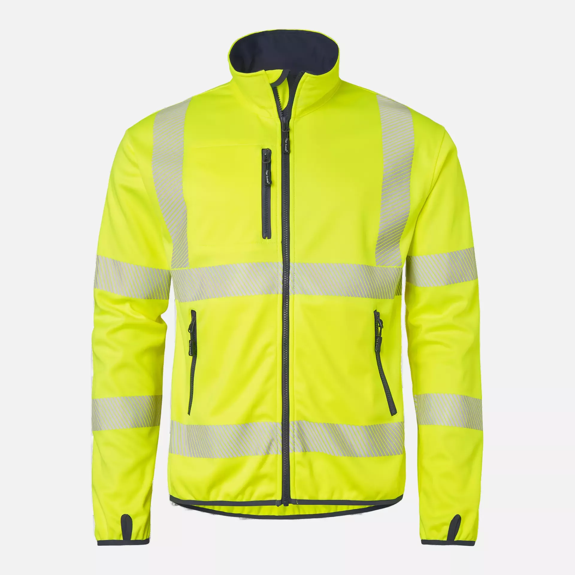 Diese Warnschutz-Softshelljacke kombiniert Strapazierfähigkeit und Komfort für Fachkräfte im Bau- und Industriegewerbe, die in anspruchsvollen Umgebungen arbeiten. Sie besteht aus 100% Polyester mit einem Stoffgewicht von 250 g/m² und verfügt über einen durchgehenden Reißverschluss mit Kinnschutz sowie mehrere sichere Verstaumöglichkeiten. Die Jacke erfüllt die Norm EN ISO 20471 Klasse 3 für Warnschutzbekleidung und ist nach OEKO-Tex SE 23-308 für textile Sicherheit zertifiziert.