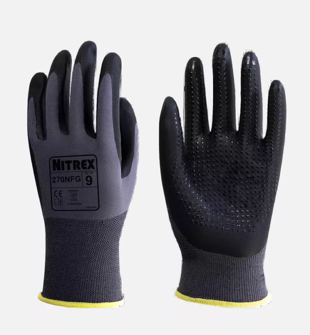 15gg Grauer Nylon-Handschuh mit Nitrilschaum-Noppenbeschichtung, 10 Paare