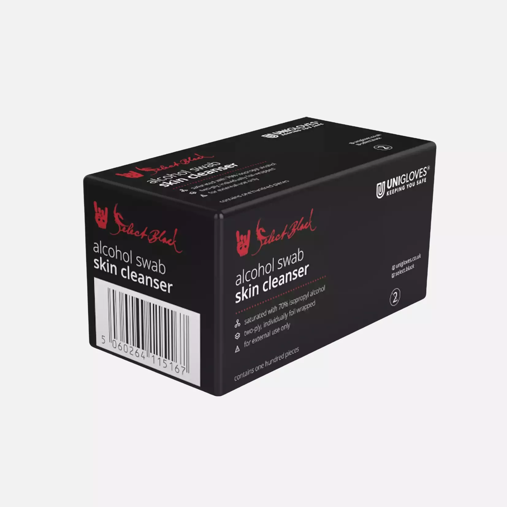 Unigloves Select Black 70% Alkoholtupfer Hautreiniger. Zweilagig, einzeln in Folie verpackt. Nur zur äußerlichen Anwendung.