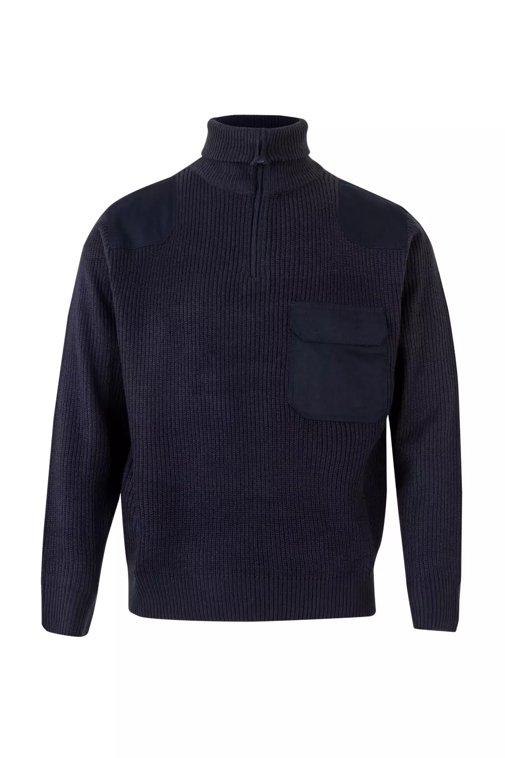 Dieses Rippstrick-Kleidungsstück verfügt über einen Rollkragen-Design mit halblangem Reißverschluss und strategischer Verstärkung an stark beanspruchten Stellen. Die Anti-Pilling-Behandlung gewährleistet ein langlebiges Erscheinungsbild, während die Brusttasche praktische Funktionen für den Arbeitsalltag bietet.