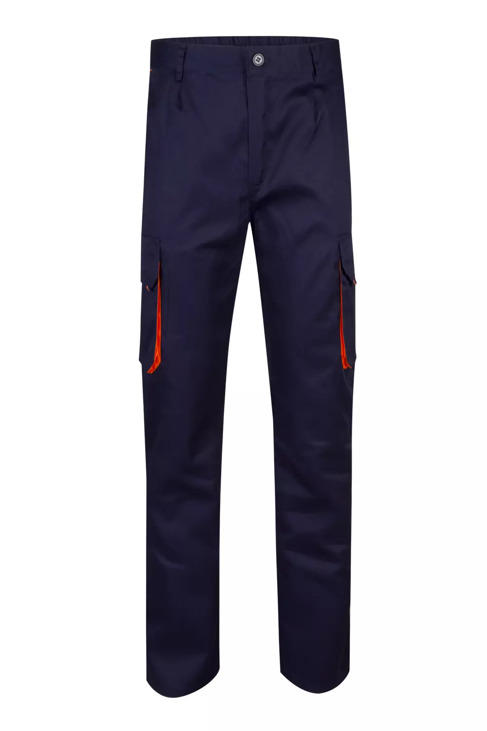 Professionelle Arbeitshose aus Köpergewebe mit verstärkten Designelementen für erhöhte Strapazierfähigkeit. Das Kleidungsstück verfügt über sechs strategisch platzierte Taschen mit sicheren Verschlüssen und einen elastischen Bund für Tragekomfort auch bei längerer Nutzung.
