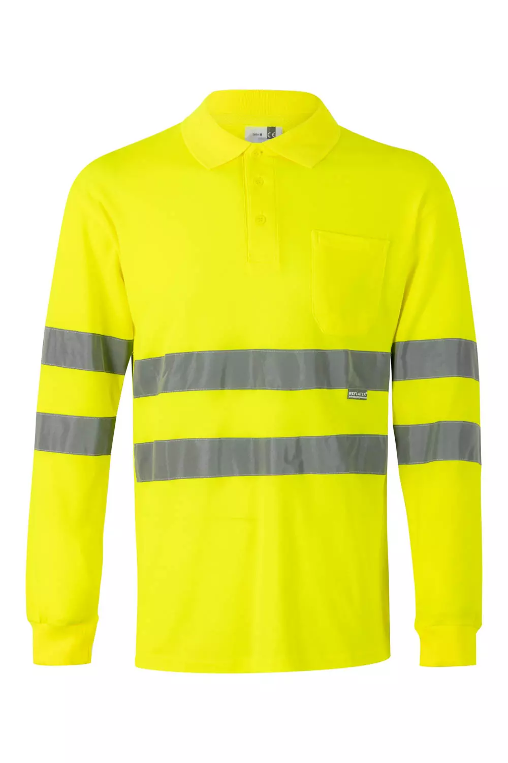 Dieses Piqué-Poloshirt besteht aus einer Baumwoll-Polyester-Mischung mit Warnschutz-Reflexstreifen an Rumpf und Ärmeln für erhöhte Sicherheit. Das Kleidungsstück verfügt über einen Knopfverschluss vorne, gerippten Kragen und Bündchen für lange Haltbarkeit sowie eine aufgesetzte Brusttasche für praktischen Nutzen.