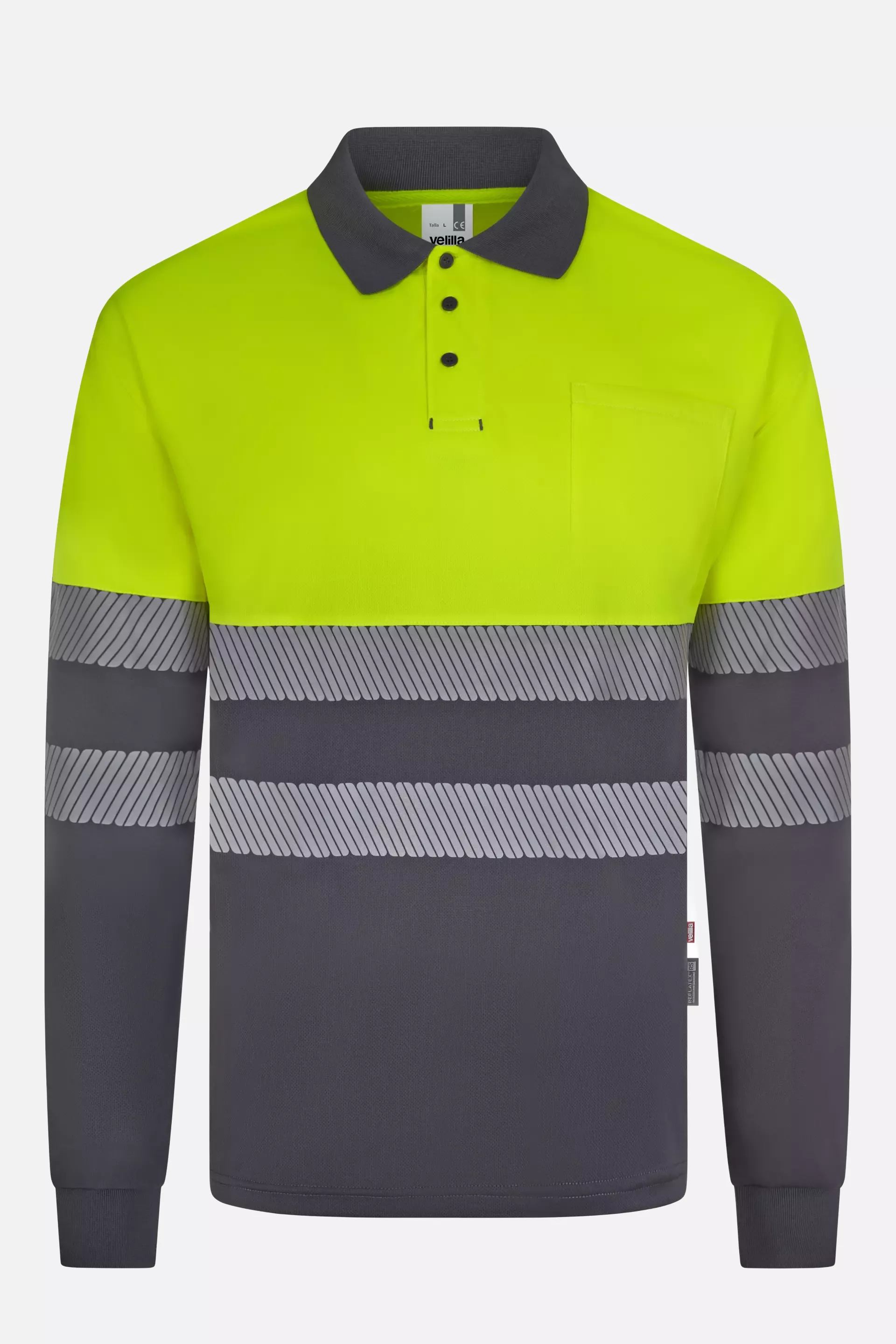 Velilla Warnschutz-Langarm-Poloshirt, Grau/Warngelb