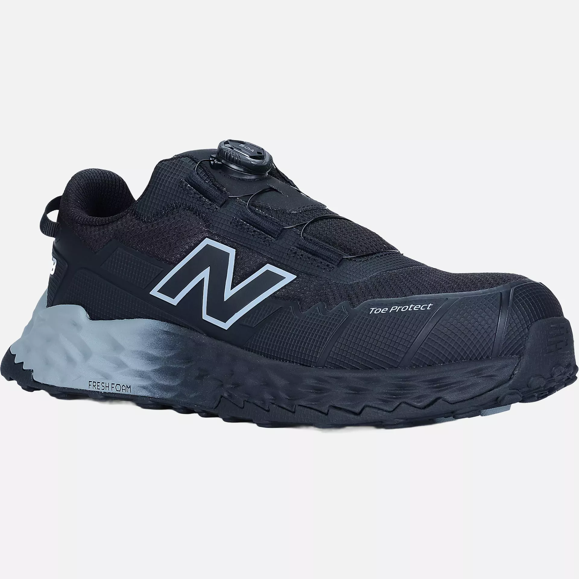 Professional safety shoes featuring Fresh Foam midsole technology for enhanced comfort and cushioning during extended work periods. The metal-free construction incorporates a fibreglass toe cap and perforation-resistant design, while the BOA® Fit System ensures quick adjustment and optimal fit. Heat-resistant outsole withstands temperatures up to 300°C for at least 60 seconds, making these shoes suitable for demanding industrial environments.