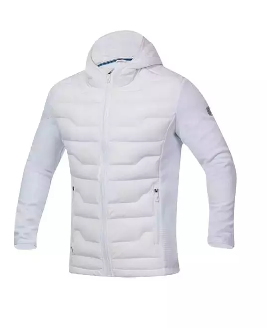 - Combination of quilted three-layer front and back parts with lightweight knitted sleeves
