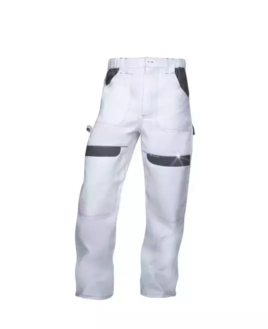 The fabric and components used to construct the pants, affecting durability, comfort, protection, and suitability for specific work environments.