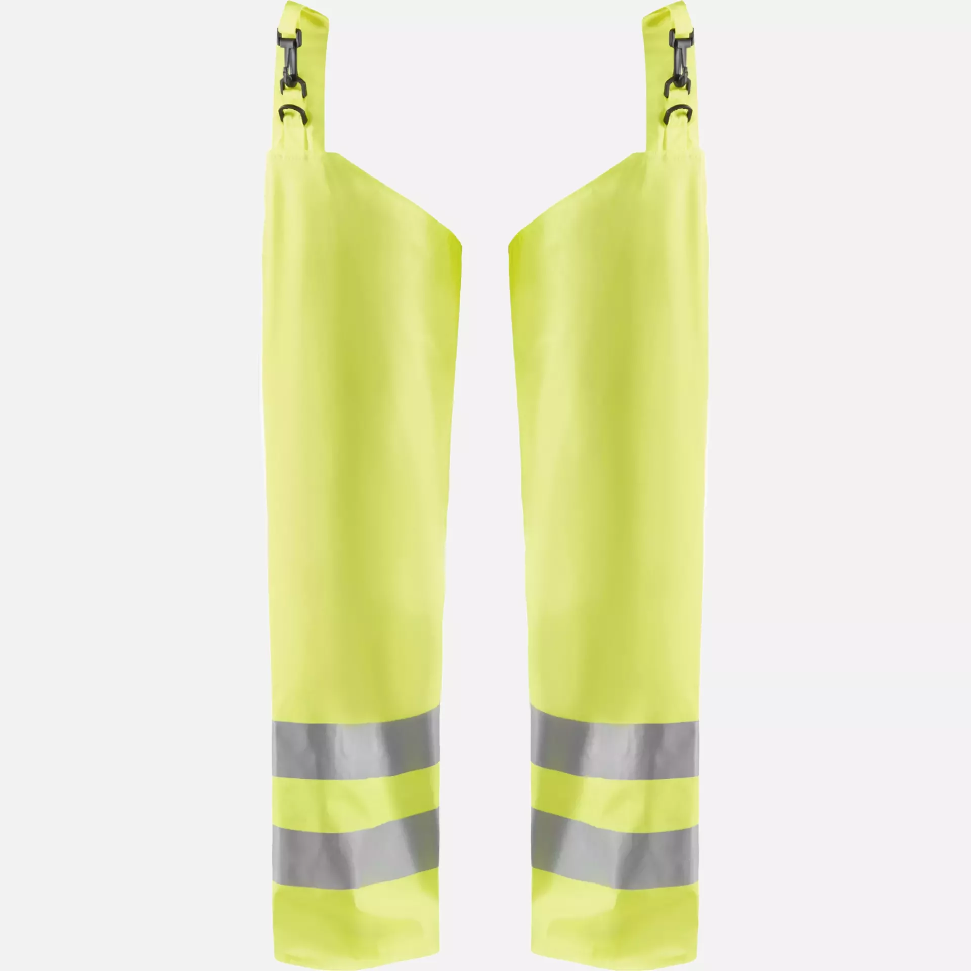 These High-Vis chaps offer wind and waterproof protection with welded seams for work tasks requiring light rainwear. With a practical carabiner hook for attachment to the belt and adjustable length via hooks at the hem, they are specifically designed for craftsmen as well as road and construction workers. The unlined construction made of PU-coated polyester ensures optimal freedom of movement while providing high visibility according to EN ISO 20471 Class 2.