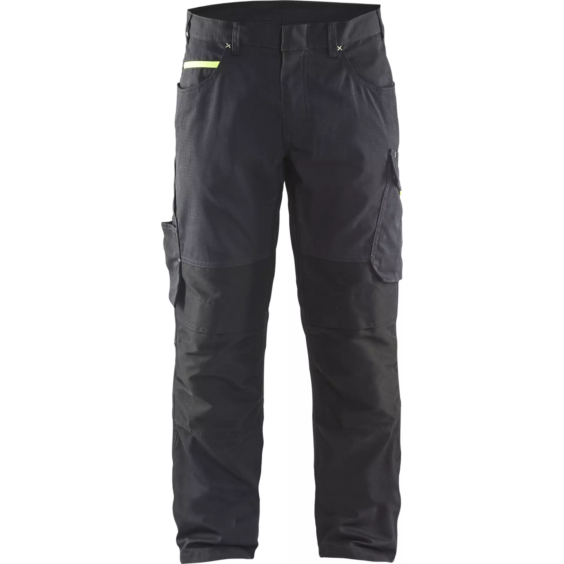These robust Ripstop Service work trousers offer optimal wearing comfort thanks to strategically placed stretch inserts at the calves and crotch as well as top-loading knee pad pockets made of reinforced CORDURA® stretch. Functional features include discrete reflective piping, a mesh-lined mobile phone pocket, ruler pocket with knife holder, and other practical details for the workday. With their relaxed fit and ergonomically pre-bent legs, these trousers are particularly suitable for service, warehouse, and mechanic tasks.