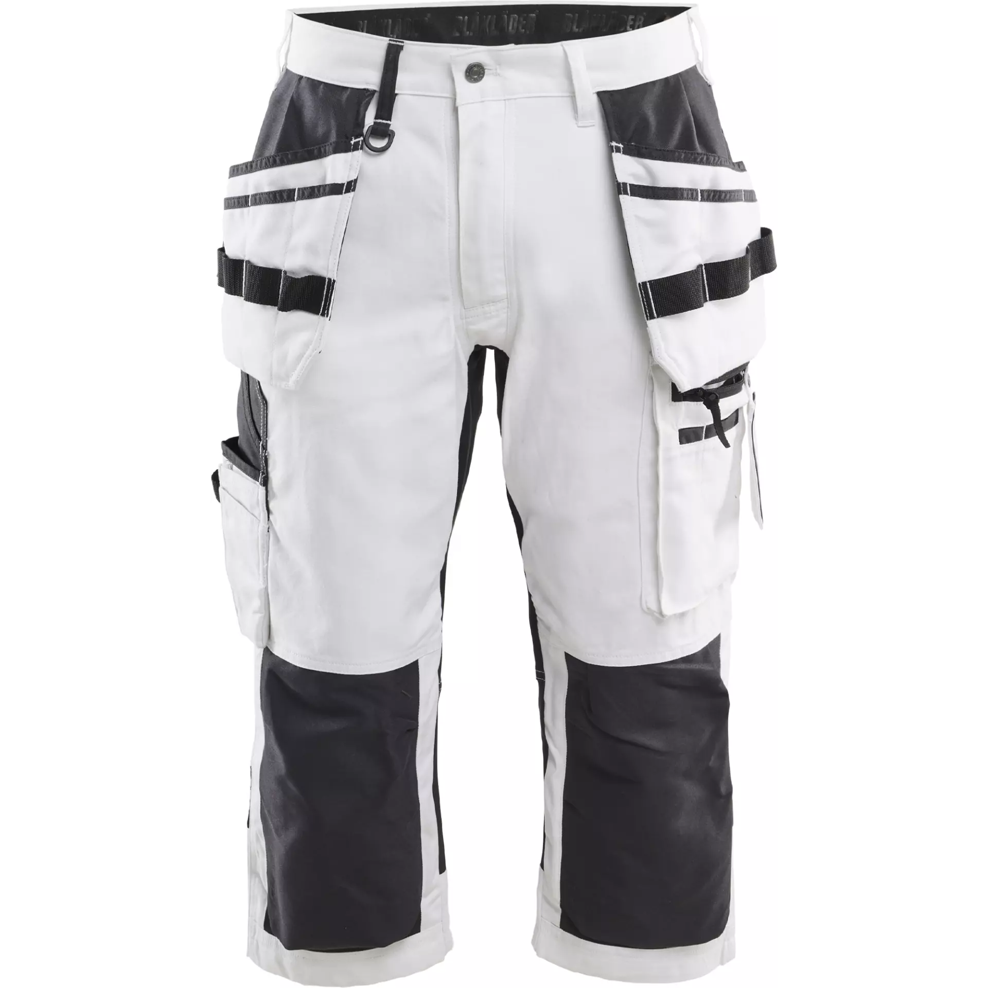 These ergonomic pirate trousers combine 100% cotton with strategically placed stretch panels for optimal mobility and comfort during painting work. The 270 g/m² canvas material offers high absorbency, while CORDURA® reinforcements in critical areas ensure durability. The trousers feature specially developed tool pockets and external kneepad pockets that, when used with corresponding kneepads, achieve EN 14404 certification.