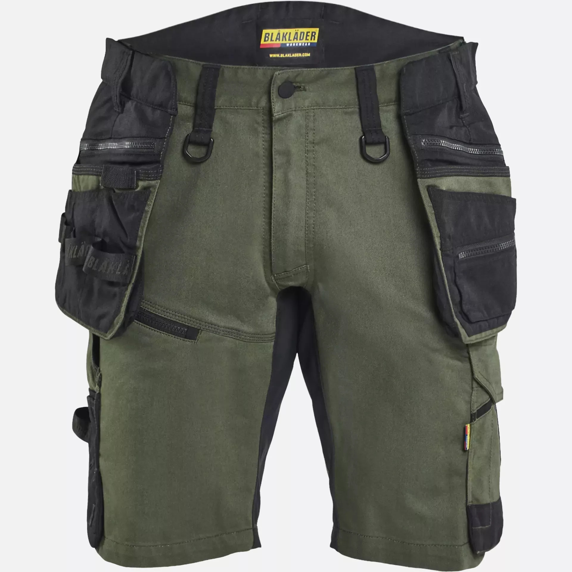 Durable craftsman shorts made of 2-way CORDURA® Stretch Twill with 4-way stretch inserts in the crotch and yoke for optimal freedom of movement. The 340 g/m² shorts offer ultimate comfort thanks to a raised waistline at the back, ventilation in the yoke, and a variety of detachable functional pockets. With CORDURA®-reinforced pockets, black reflective details, and breathable mesh inserts, they are ideal for various trades.