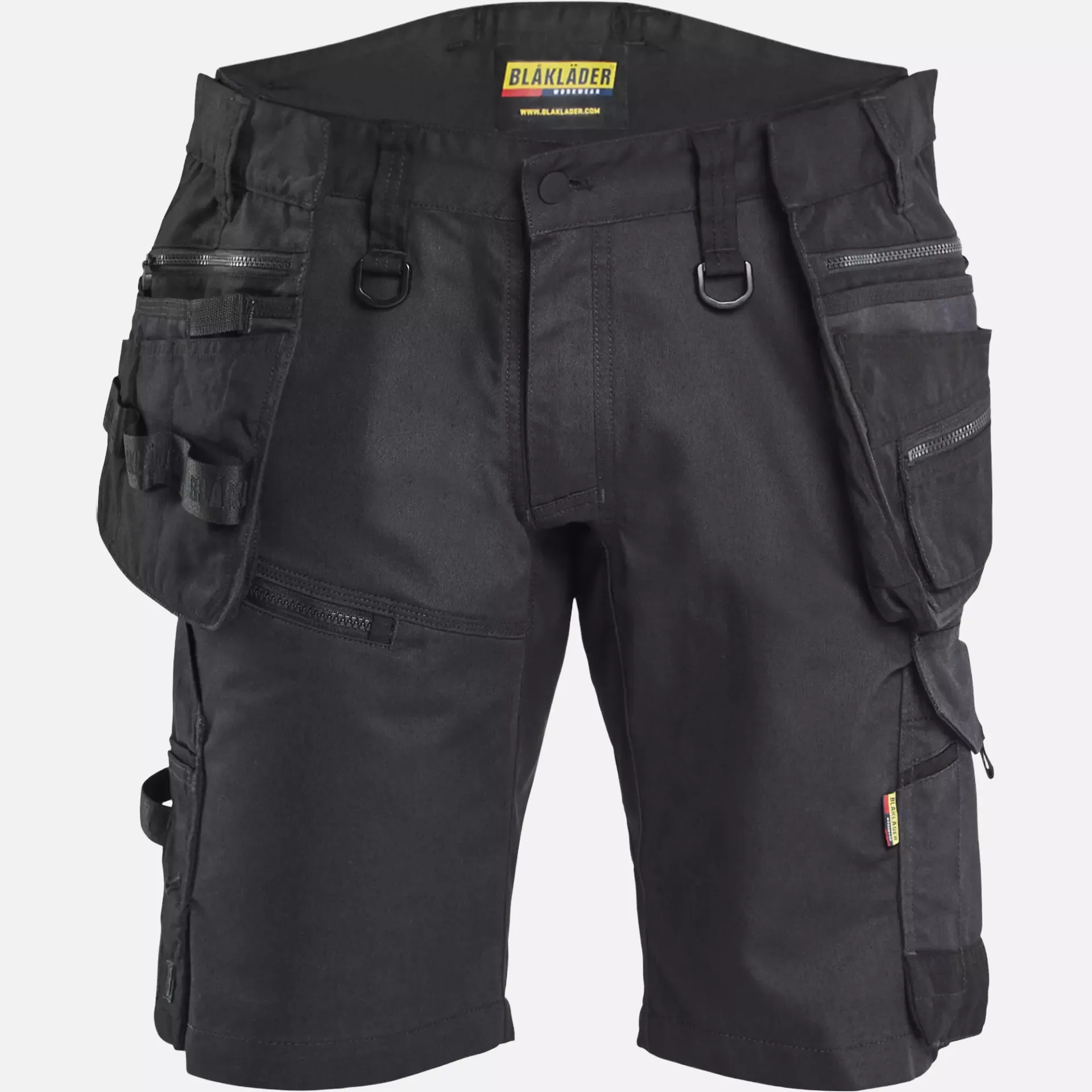 Durable craftsman shorts made of 2-way CORDURA® Stretch Twill with 4-way stretch inserts in the crotch and yoke for optimal freedom of movement. The 340 g/m² shorts offer ultimate comfort thanks to a raised waistband at the back, ventilation in the yoke, and a variety of detachable functional pockets. With CORDURA®-reinforced pockets, black reflective details, and breathable mesh inserts, they are ideally suited for various trade activities.
