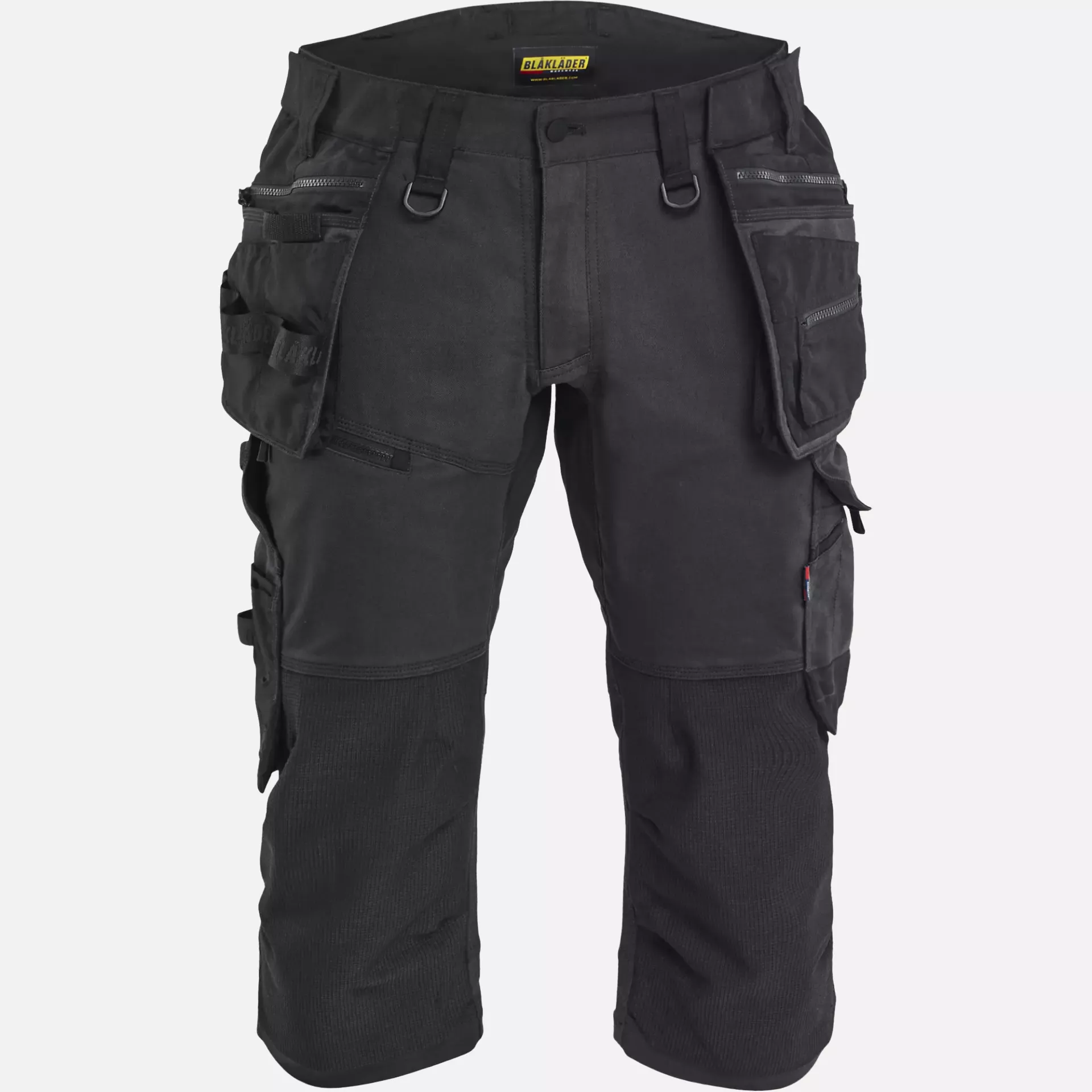 Durable pirate shorts made of 2-way CORDURA® Stretch Twill with 4-way stretch panels in the crotch, yoke, and back of knees for optimal freedom of movement. The shorts feature detachable nail pockets, CORDURA®-reinforced knee pad pockets, and strategic ventilation zones for increased comfort during manual work. With a raised back waistband and ergonomically pre-bent legs, they offer practical functionality for various professions. The shorts meet EN 14404 standards in combination with appropriate knee pads.