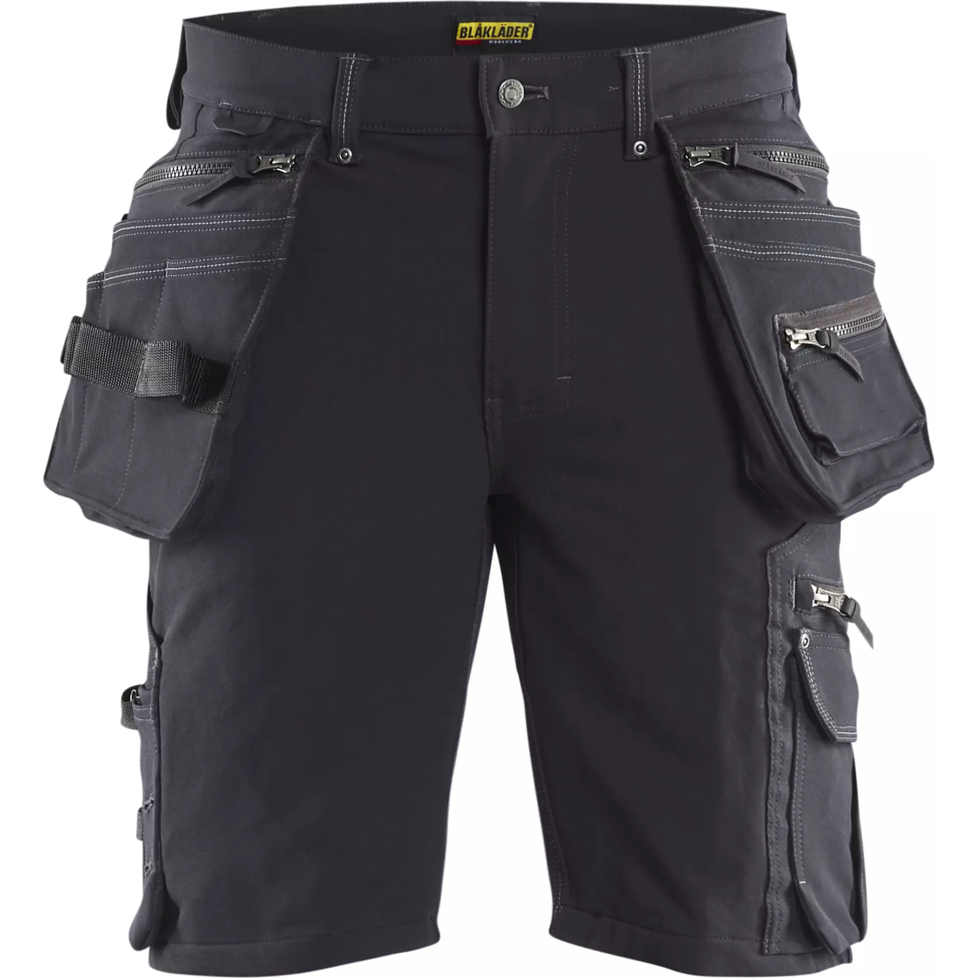 Craftsman shorts with durable 4-way stretch in a slim fit, based on Blaklader's 1998 trousers. This shorts variant features extensive tool pockets and practical details for professional trades. The durable material made of polyamide and elastane offers optimal freedom of movement combined with high durability.