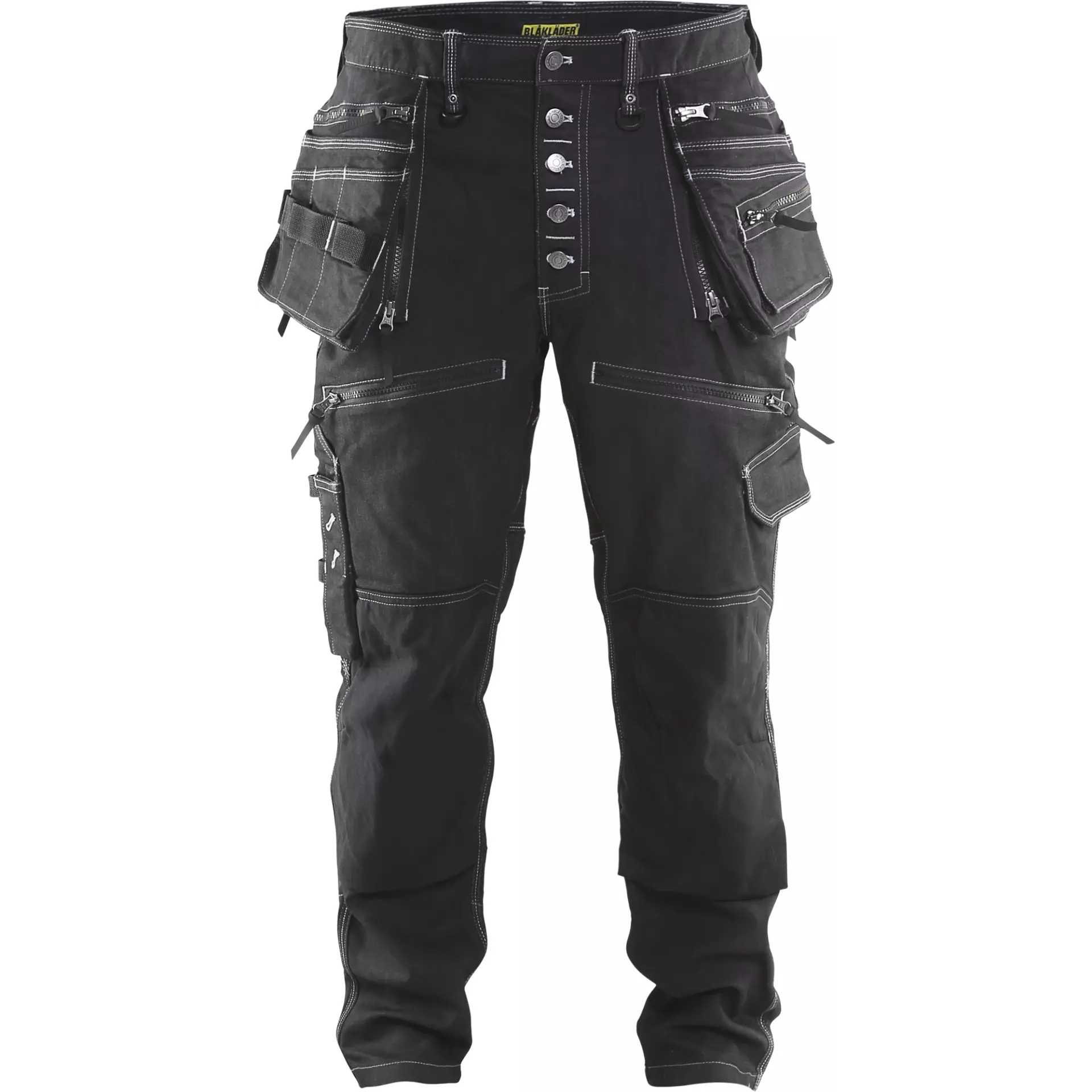 Robust craftsman work pants made of Cordura® Stretch Denim with a low crotch and tapered leg, developed for optimal comfort on the hips. Thanks to stretch panels in the crotch and on the calves, the pants offer maximum freedom of movement and feature CORDURA® 1000 reinforced areas on the knees and functional pockets. With extra-wide tool pockets, kneepad pockets, and versatile tool attachment options, they are specifically designed for craftsmen and warehouse workers.