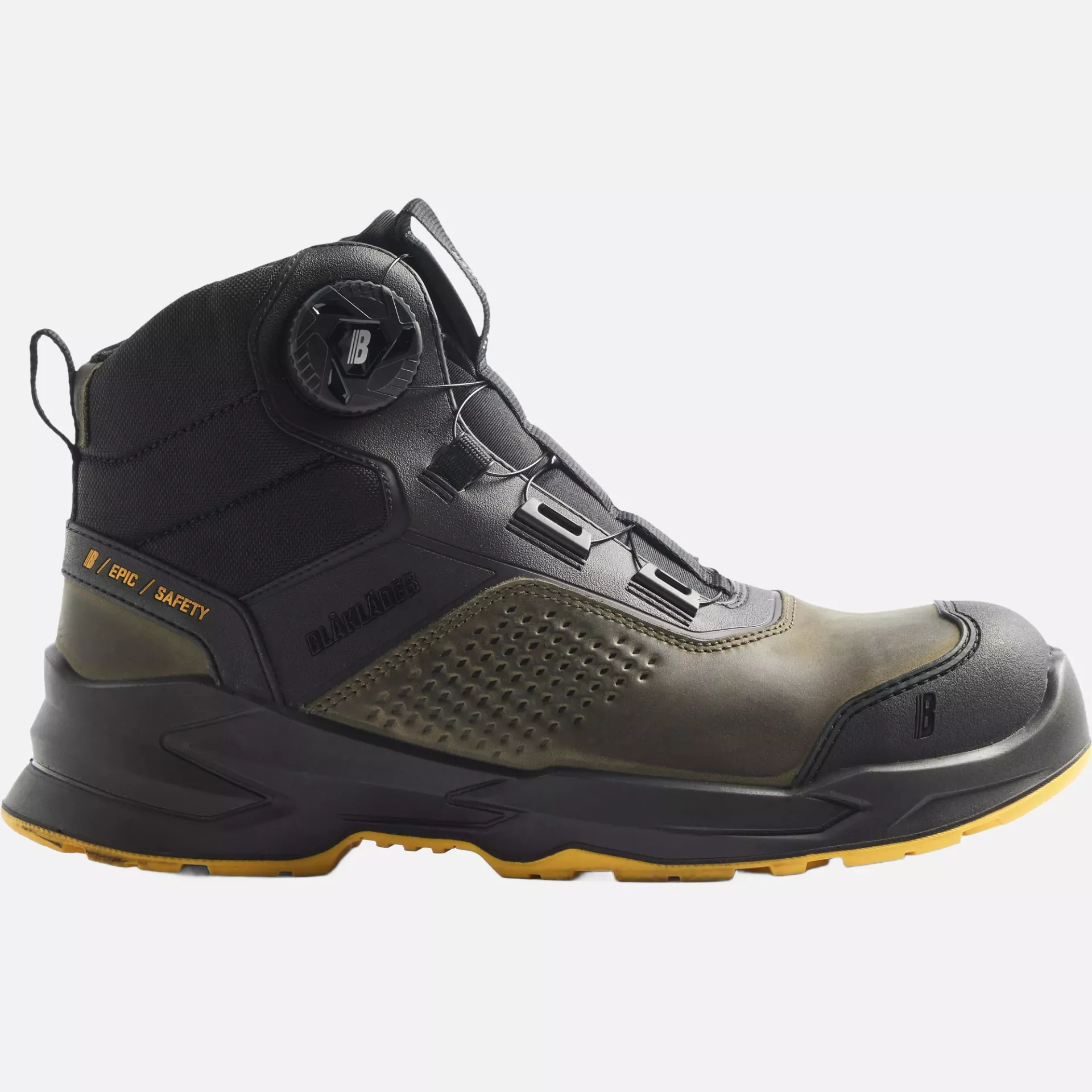 This robust S3S safety boot combines durable, water-repellent nubuck leather with the practical Freelock fastening system for a precise fit. Equipped with a metal-free composite toe cap and flexible textile penetration protection according to the PS standard, it offers reliable protection against mechanical risks and heat. The slip-resistant nitrile rubber outsole with Ladder Grip (LG) ensures stability on uneven surfaces, while the shock-absorbing ETPU insole ensures high wearing comfort.