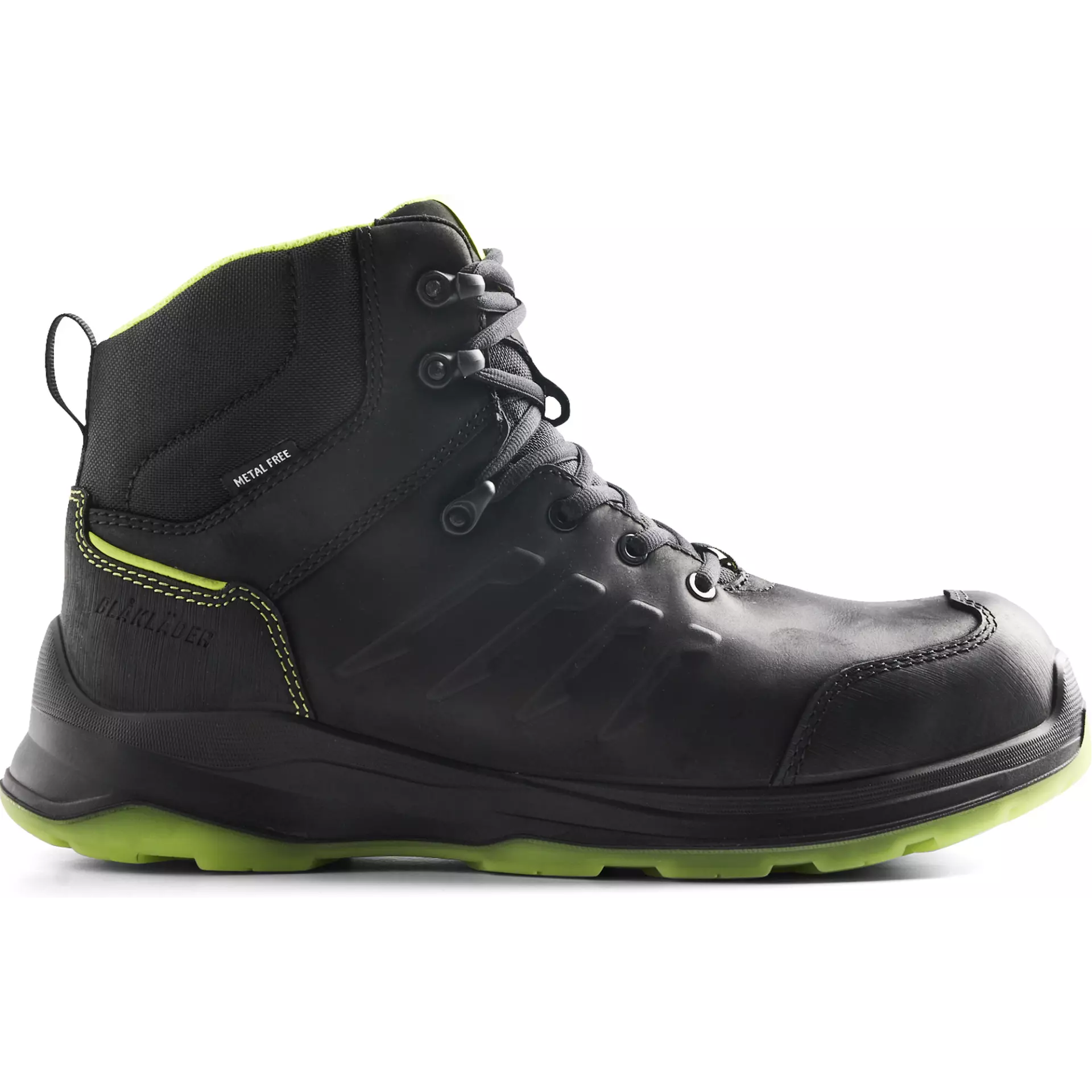 Lightweight and functional safety boot with durable leather upper material and additional reinforcement in the toe and heel area for increased abrasion resistance. The composite toe cap and the soft, flexible non-metallic nail penetration protection according to PS standard meet tough requirements with thinner 3 mm nails. The PU midsole offers perfectly balanced shock absorption, while the slip-resistant TPU outsole ensures a secure grip. The anatomically shaped insole made of soft PU material guarantees optimal wearing comfort.