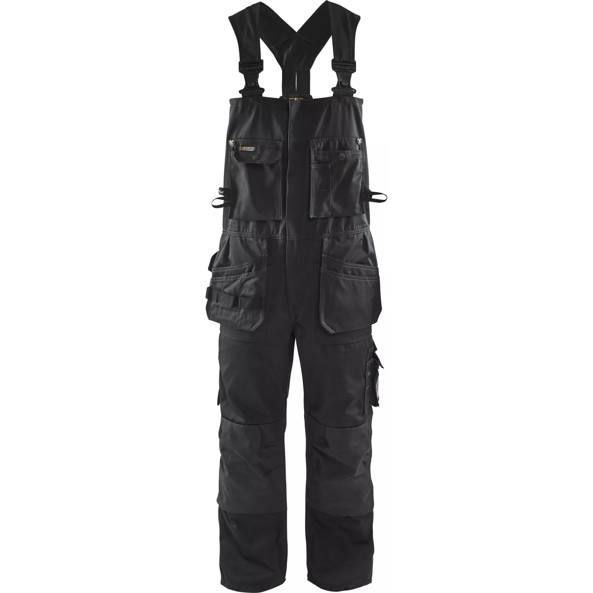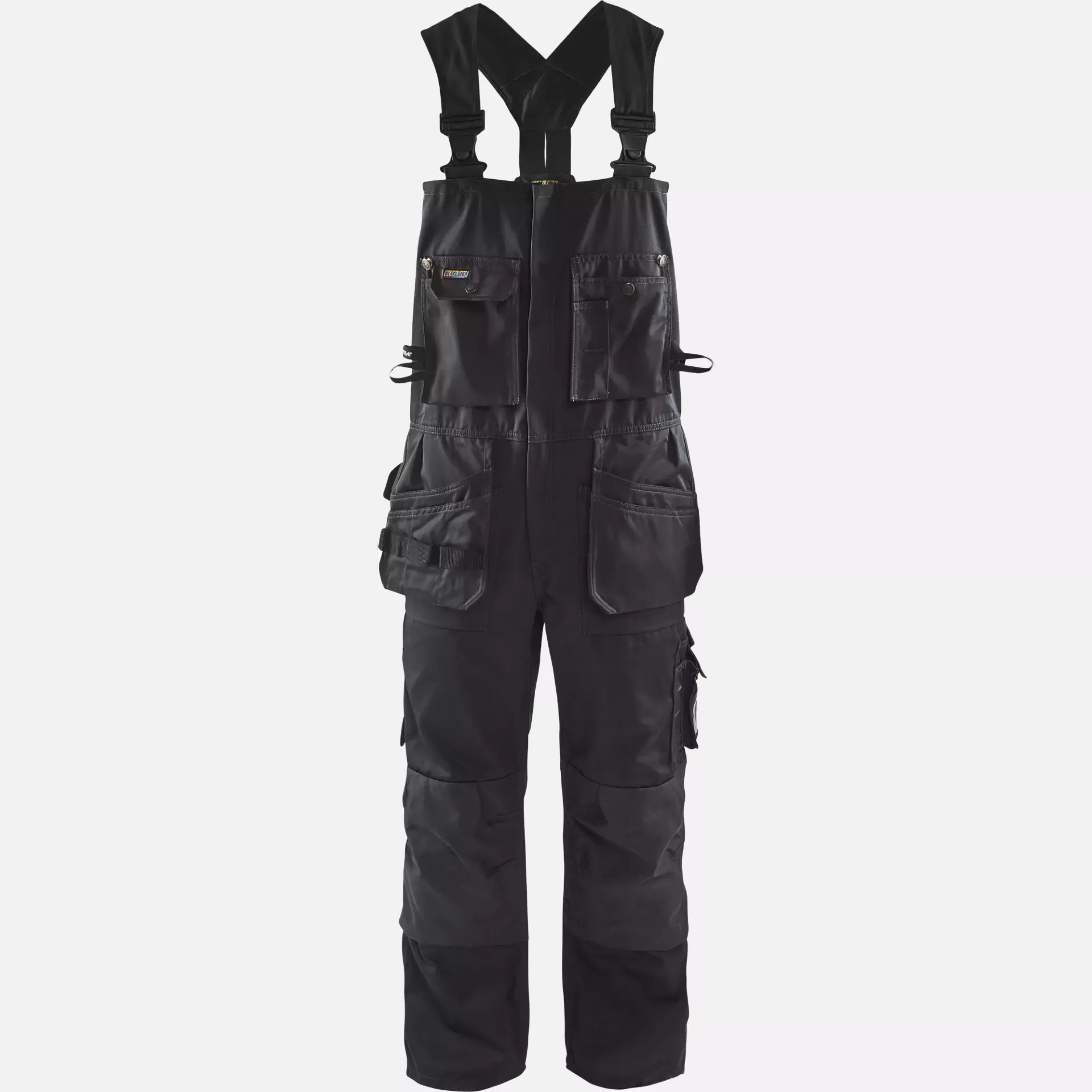 These multifunctional bib overalls for craftsmen offer comprehensive features with numerous pockets and CORDURA® reinforcements in critical areas. With two loose-hanging chest pockets, a leg pocket with multiple compartments, and reinforced kneepad pockets, they are ideally suitable for various skilled trades. The robust construction made of 300g/m² twill fabric and the wide braces with quick-release fasteners ensure comfort and durability during demanding work.