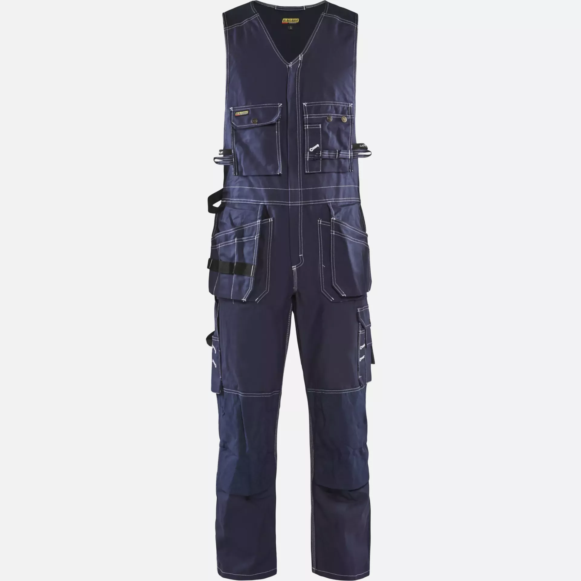 This classic, sleeveless overall offers thoughtful details and intelligent pocket solutions for efficient work in various trades. The knee pad pockets are reinforced with CORDURA® and the 370 g/m² cotton twill fabric ensures durability and comfort. With stretch inserts on the back and a variety of specialized pockets, this overall is ideally suited for craftsmen, bricklayers, roofers, mechanics and other professions.