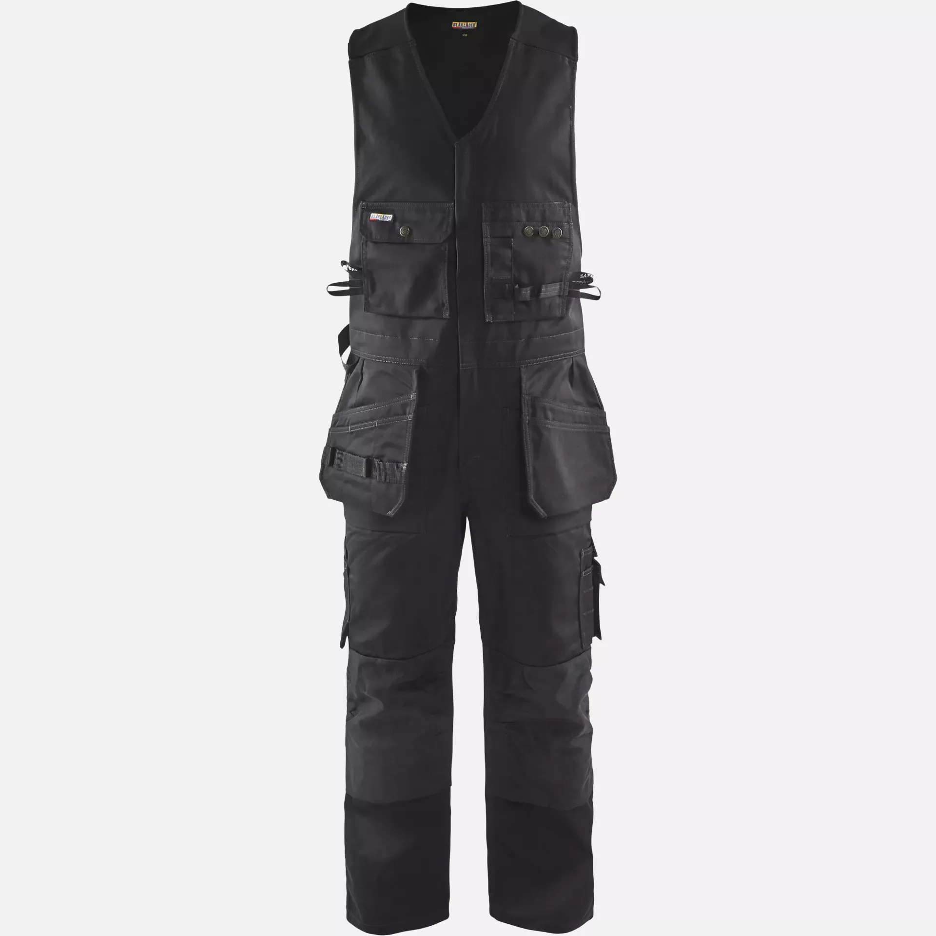 A classic sleeveless overall with well-thought-out details and intelligent pocket solutions for efficient workflows. The CORDURA®-reinforced knee pad pockets and robust polyester-cotton fabric offer durability and comfort. With an adjustable shoulder section, stretch panels at the back, and extensive tool pockets, this overall is designed for various skilled trades.