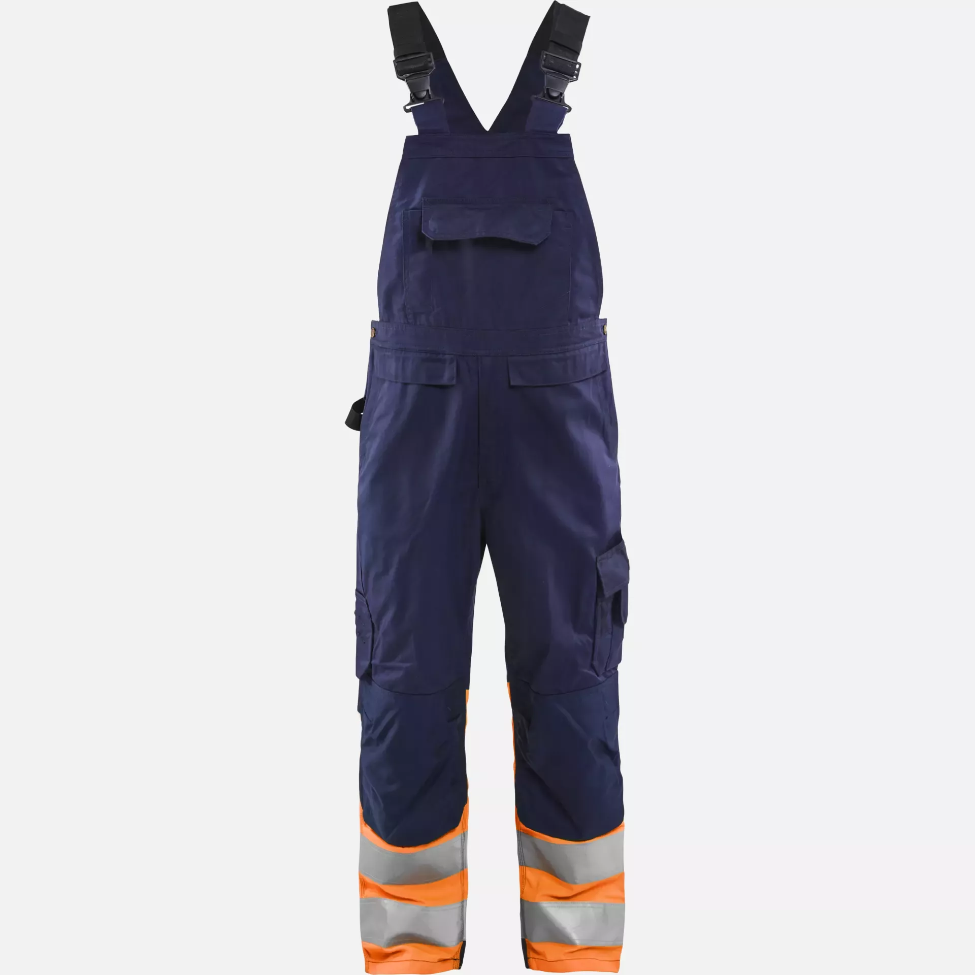 These High-Vis Bib Overalls offer comprehensive protection and functionality for road and construction workers as well as craftsmen. With CORDURA®-reinforced knee pad pockets, back pockets, and ruler pockets, they ensure durability in demanding work environments. The trousers feature reflective stripes on the back and are certified according to EN ISO 20471 Class 1. Pre-bent legs and an adjustable waist ensure optimal wearing comfort.