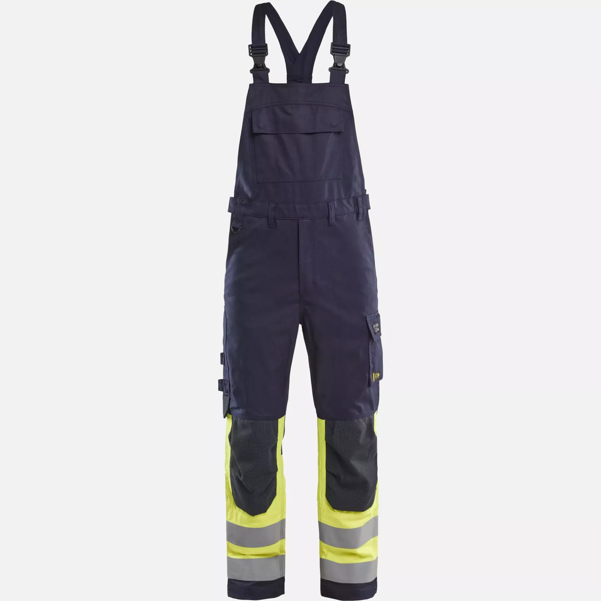 This bib and brace made of inherently flame-resistant material offers integrated flame protection through the fibre structure itself. The oil, dirt and water-repellent Ripstop construction ensures high tear resistance, while CORDURA®/Kevlar®/Protal®-reinforced kneepad pockets offer additional protection. With an ATPV value of 11 cal/cm² and comprehensive certifications, it is designed for electricians, craftsmen, as well as road and construction workers. The bib and brace is tested and approved for up to 50 wash cycles.