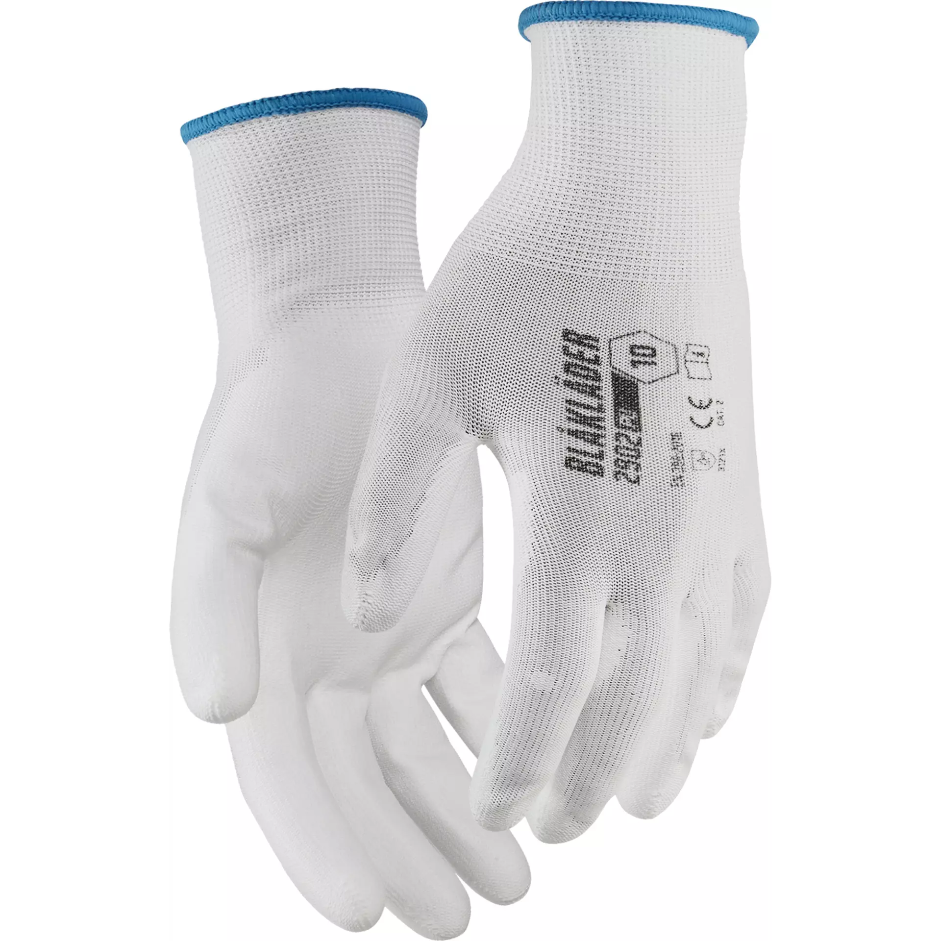 Thin work gloves made of synthetic material with polyurethane-coated palm, developed for precision work and light assembly work. The PU coating offers resistance to oils and greases, while the ventilated back of the hand ensures comfort. These chrome-free, unlined gloves meet EN 388 (3121X) standards and are ideal for various all-round work in dirty environments.